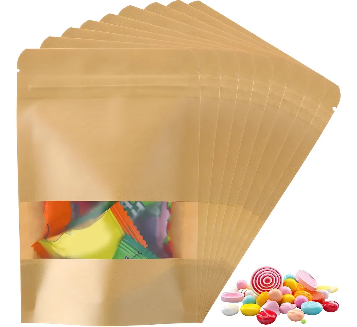 bolsas de papel kraft con ventana de 4 x 6 pulgadas, bolsas de papel kraft con cremallera a granel, bolsas de papel reutilizables con cierre para almacenamiento de alimentos, bolsas