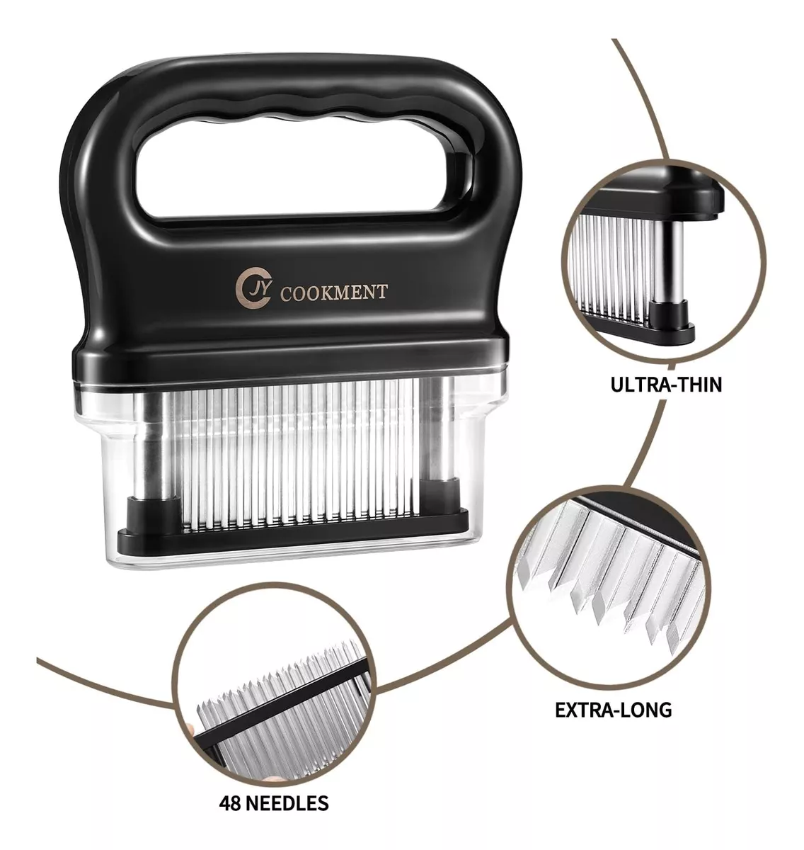 JY COOKMENT Ablandador de carne con 48 cuchillas de aguja ultra afiladas de acero inoxidable, herramienta de cocina de cocina, mejor para ablandar, barbacoa, adobo