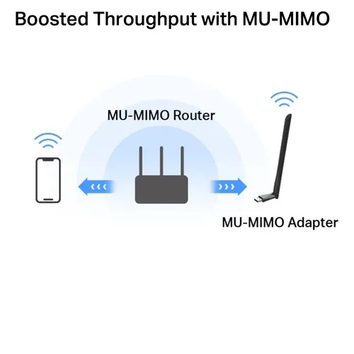 MU-MIMO technology provides two simultaneous data streams, improving the throughput and efficiency of the entire network when working with a compatible MU-MIMO router.