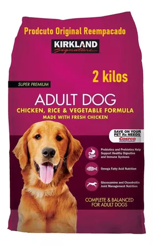 Nuestra comida Kirkland Signature de 2 kg para perros adultos es un alimento seco que está formulada con proteínas seleccionadas e ingredientes de alta calidad, con proteínas fácilmente digeribles, granos saludables y pollo deshuesado, suplemento de vitamina A, biotina y suplemento de vitamina B12, lo que le permitirá a tu mascota mantenerse saludable y tener el pelaje suave y brillante. Almacena el bulto de comida en lugar seco para mantener su alimento fresco en cada comida.