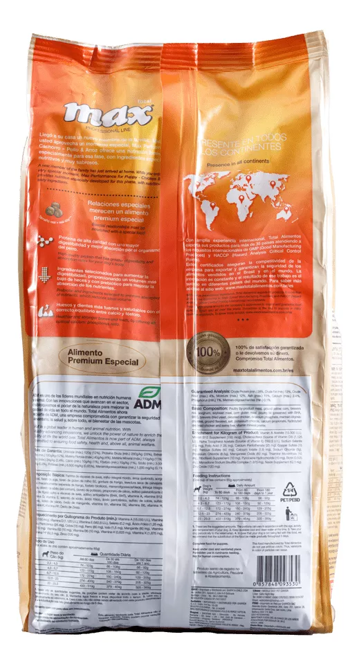 Afrecho de gluten de maíz 60, Afrecho de soja, Arroz medio grano, Carne mecánicamente separada de pollo, Fosfato dicálcico, Grasa de pollo, Harina de menudos de pollo, Levadura seca de cerveza, Manano-oligosacárido, Maíz integral molido, Sorgo integral |