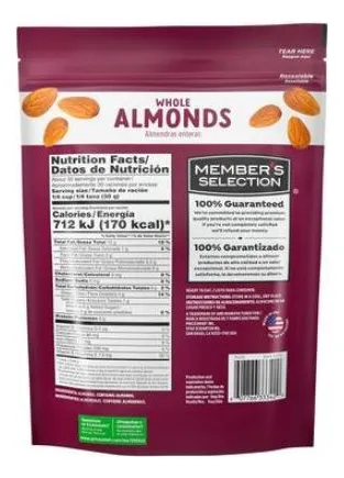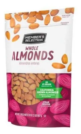 ¡Fuente de energía saludable! Disfruta al máximo las deliciosas almendras enteras sin sal agregada de Member’s Selection | Son la perfecta adición para recetas y un snack ideal para saciar el hambre | Disponibles en bolsa resellable de 907 g para guardar en un lugar fresco y seco | Nutre tu cuerpo con las proteínas y grasas saludables que solo esta exquisita variedad de almendras puede brindarte.