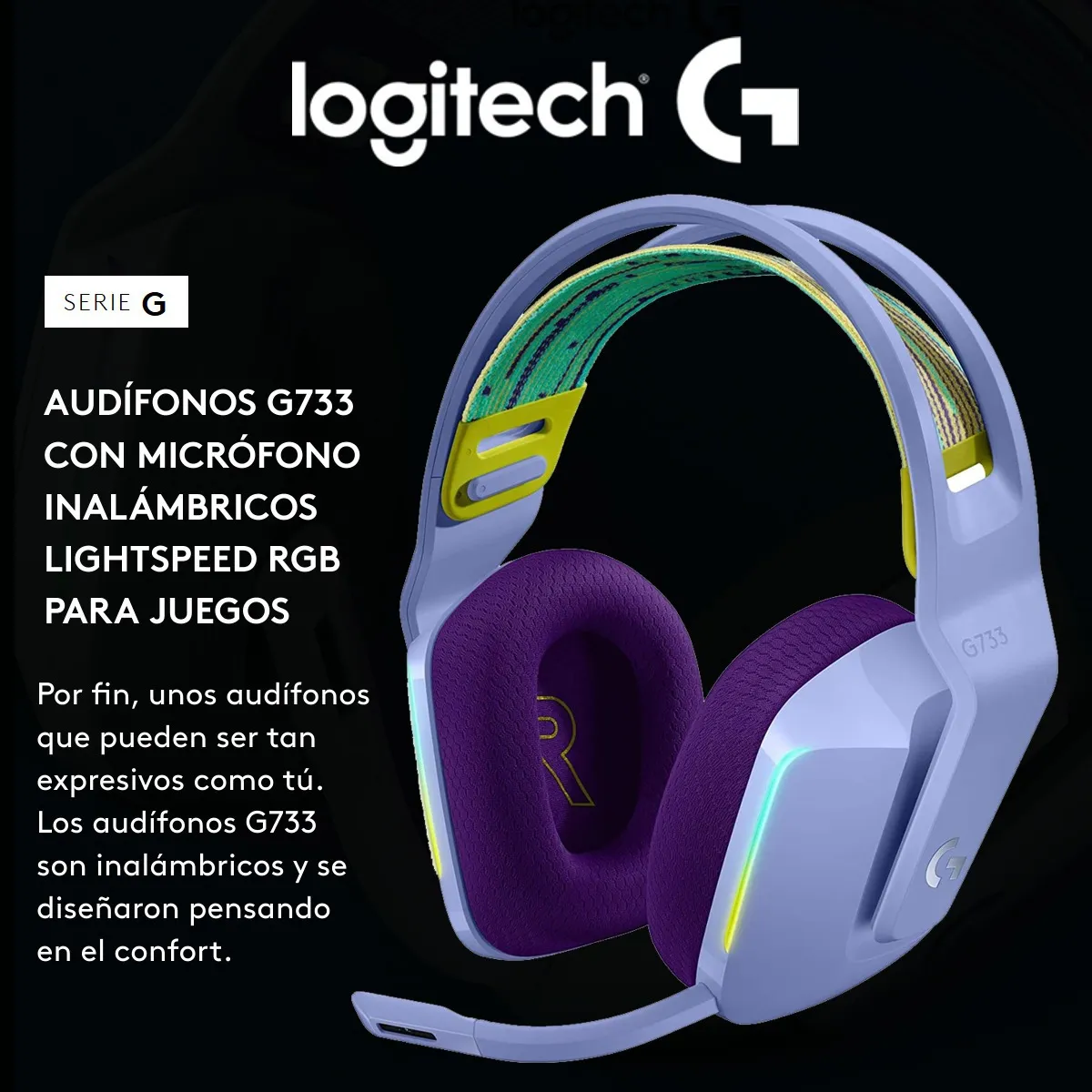 - Audífonos G733 con micrófono inalámbricos LIGHTSPEED RGB para juegos