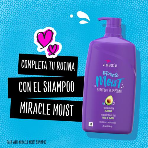 ELIMINA LA RESEQUEDAD DE TU PELO. Con una infusión de aceite de aguacate y semilla de jojoba, el champú Miracle Moist de Aussie transforma el cabello seco y sediento con una hidratación fuera de este mundo, mientras te deja con el delicioso aroma de los cítricos. Perfecto para el cabello seco.