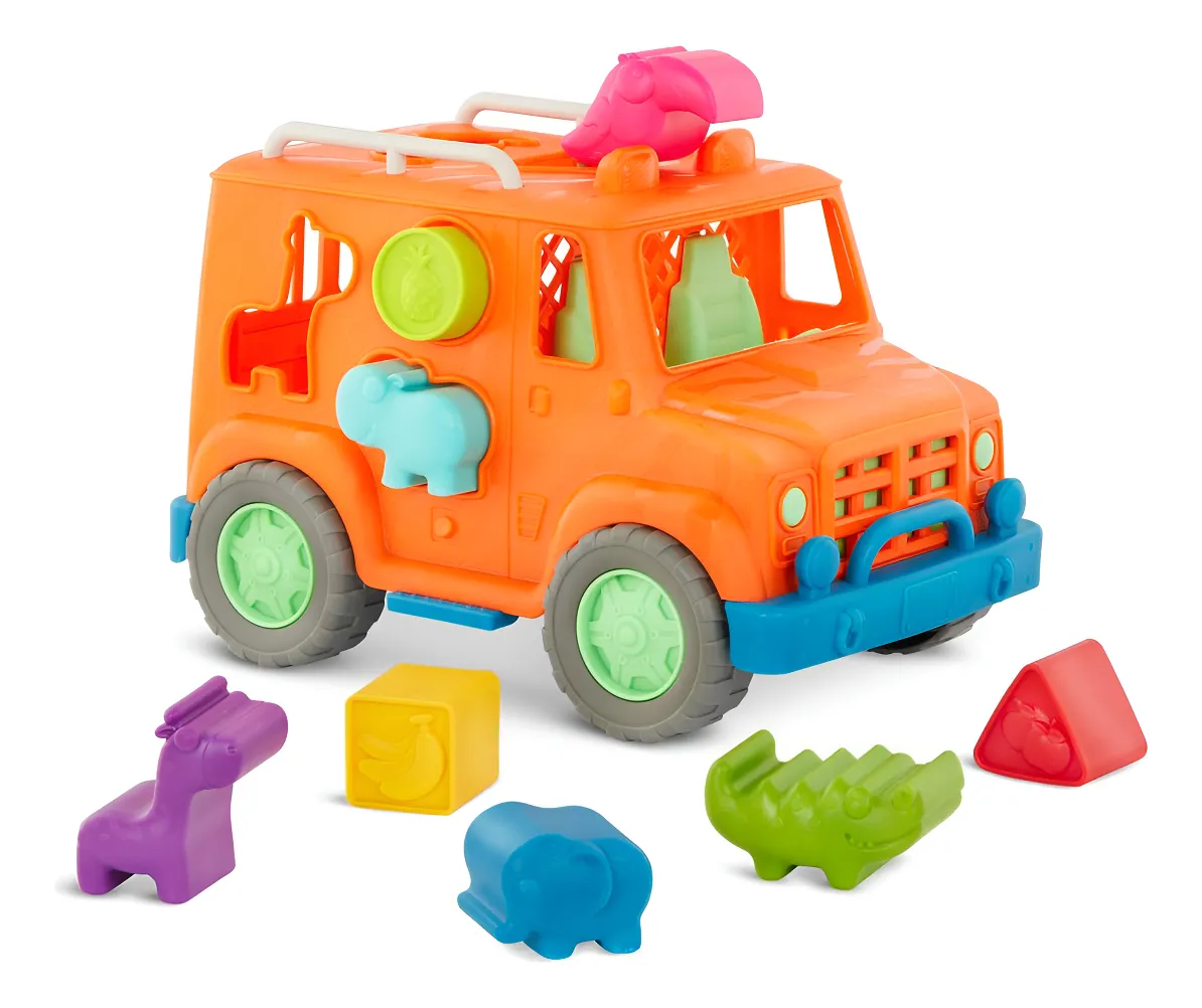 El camión clasificador de formas de Battat es un juguete educativo y entretenido que combina exploración, aprendizaje sensorial y juego de motricidad en un diseño colorido y resistente. Incluye 8 piezas con formas de animales y figuras que se deben insertarse en sus correspondientes espacios, fomentando la coordinación la identificación de formas y colores, y el desarrollo cognitivo a través del juego activo.