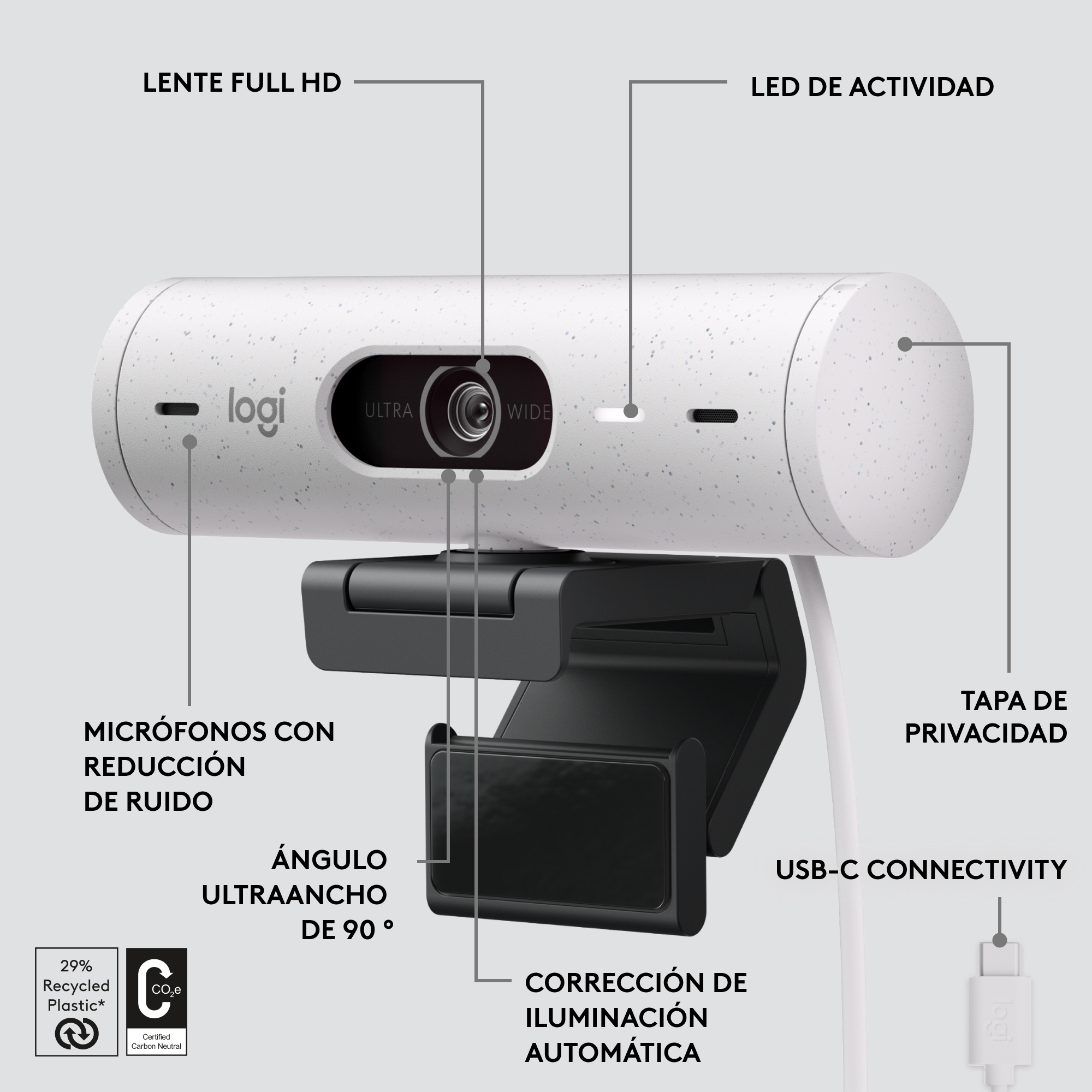 Cámara Web Full Hd Logitech Brio 500 / Con Hdr Blanca