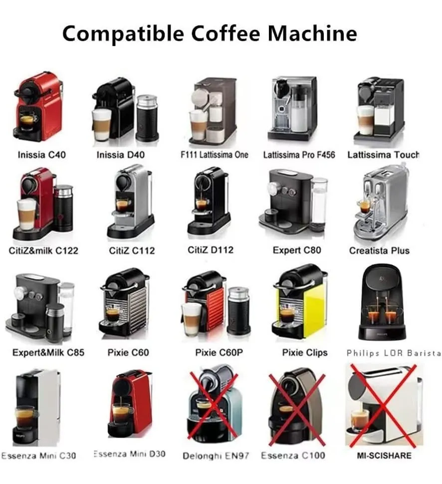 Compatibilidad: el juego de cápsulas de café de acero inoxidable es compatible con la mayoría de máquinas Nespresso (pero no todas), comprueba las instrucciones para verificar la compatibilidad del modelo