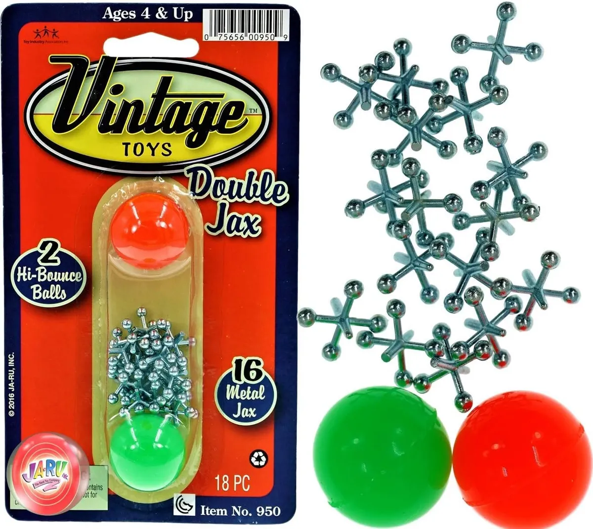 JA-RU Juego de jacks de metal vintage/dos bolas rebotantes. (1 unidad) Mini juguete Jax. Clásicos clásicos clásicos retro familiares. Recuerdos de fiesta a granel, rellenos de calcetines. 950-1B