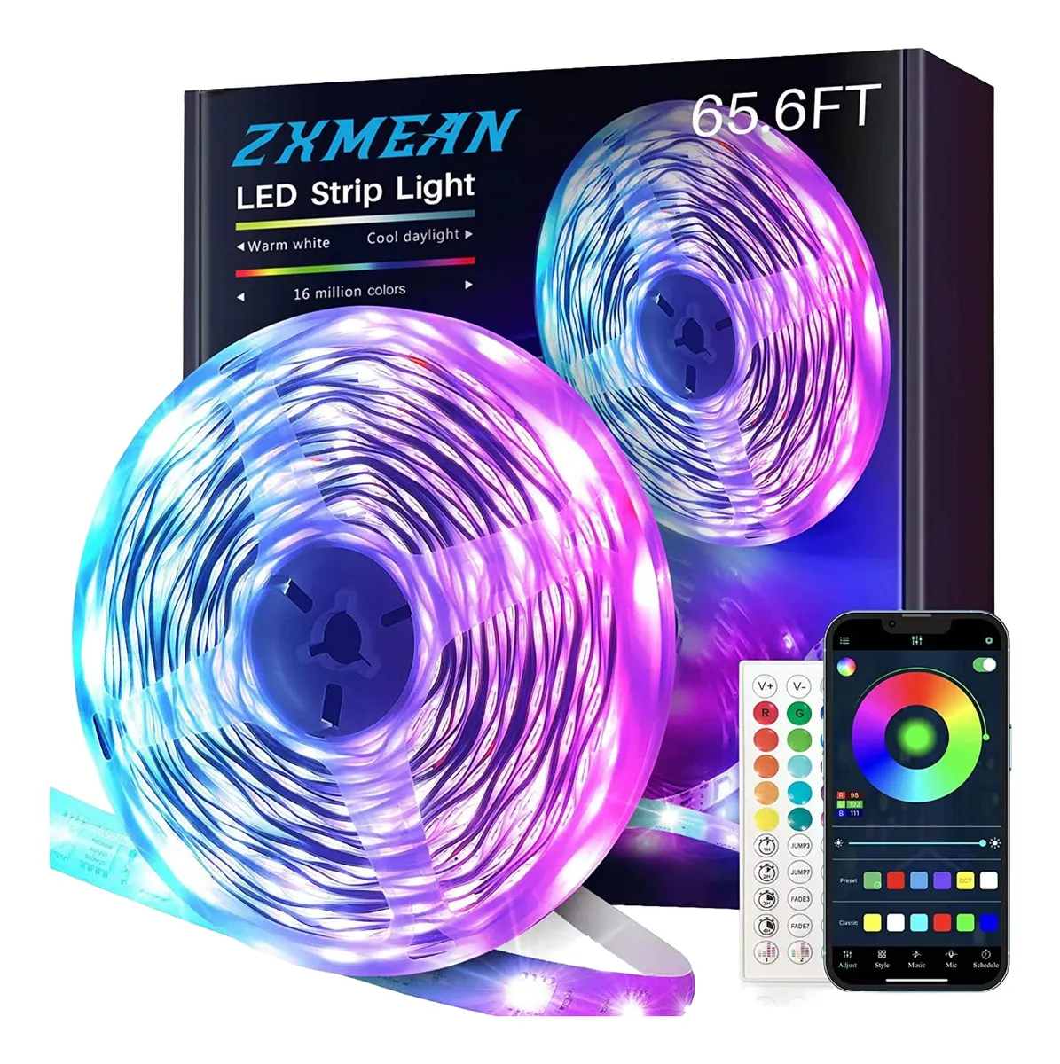 Tira de luces inteligentes controlada por aplicación: las tiras de luces LED se pueden controlar por aplicación inteligente, control remoto de 44 teclas; proporciona 16 millones de colores, hay 23 modos para que elijas, como parpadeo, cambio gradual, salto estroboscópico; haz lo que quieras, lo que elijas