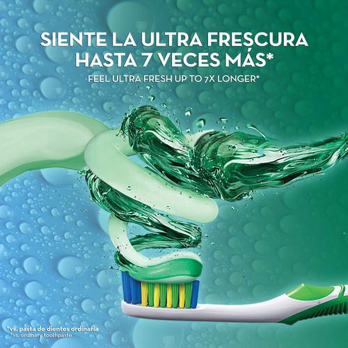 Crest Complete Plus Scope Advanced Active Foam mata el 99.9% de los gérmenes del mal aliento, tiene un 35% más de blanqueamiento y contiene un 30% más de frescura de Scope. La fórmula mejorada con espuma activa ayuda a combatir las caries, el sarro y eliminar las manchas superficiales. el 99% de los gérmenes del mal aliento.