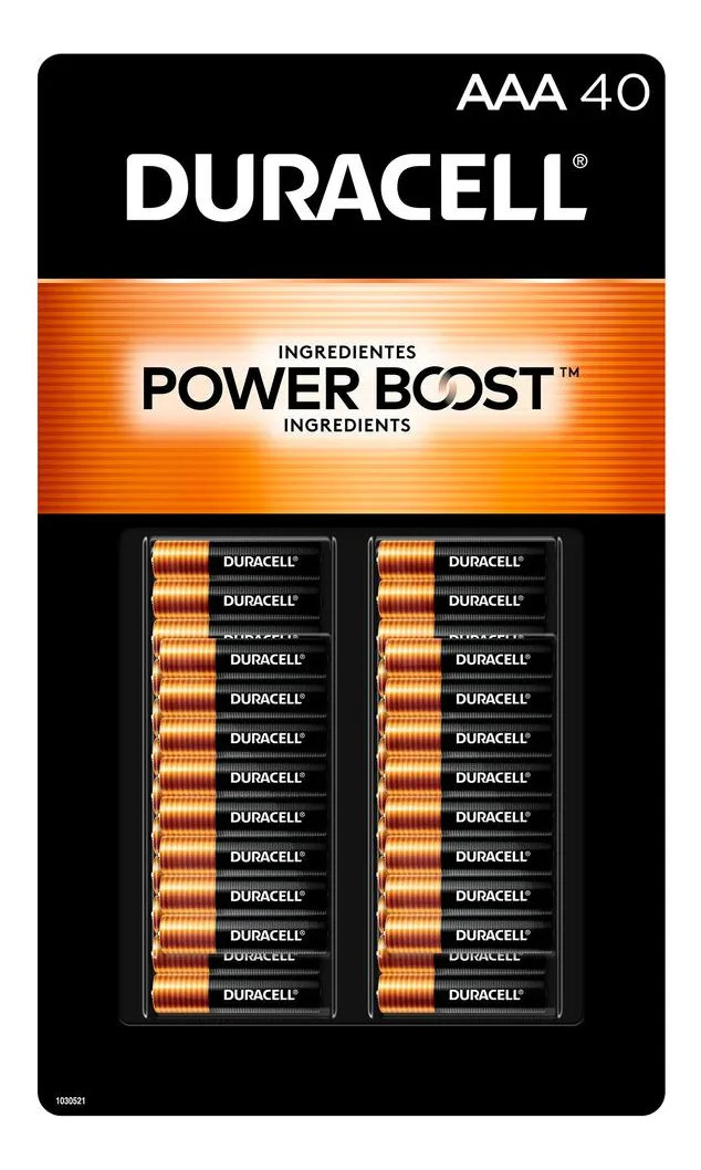 Incluye 40 unidades que aseguran un suministro constante de baterías para uso frecuente en el hogar y la oficina | Peso Neto: 399.16 kg / 0.88 lb | Dimensiones del empaque: 27.94 cm x 16.51 cm x 2.26 cm / 11″ x 6.5″ x 0.89″ | Materiales: Dióxido de Manganeso, Zinc, Hidróxido de Potasio, Grafito y Óxido de Zinc | Verifica la polaridad correcta (+/-). No desmontar, recargar, ni arrojar al fuego. No mezclar pilas usadas y nuevas, de marcas o tipos diferentes | Mantener alejadas de los niños | En caso de ingestión consulte a un médico de inmediato | Hecho en Estados Unidos.