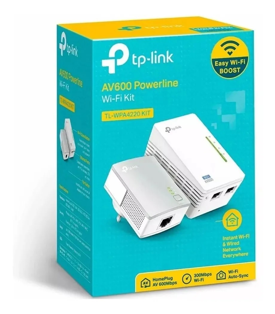 Extensor Powerline Wi-Fi 300Mbps AV500 Kit de Inicio – TL-WPA4220KIT Súper Extensión de Rango con un Sólo Toque – El botón “Wi-Fi Clone” simplifica su configuración Wi-Fi y ayuda a crear una red doméstica unificada sin interrupciones. Cumple con la norma HomePlug AV que proporciona velocidades de transferencia de datos a alta velocidad de hasta 500Mbps a través del cableado eléctrico existente de su casa, ideal para el streaming de video en HD ó 3D y juegos en línea sin retrasos. Extiende las conexiones inalámbricas de 300Mbps a las áreas más difíciles de acceder de su casa y oficina. Clonación Wi-Fi sin fisuras Copia automáticamente el nombre de red inalámbrica (SSID) y la contraseña de su router con sólo pulsar un botón. Después de pulsar el botón, se coloca el adaptador en cualquier lugar y disfrutar de las red sin fisuras en su casa u oficina. extensores de red Wi-Fi comunes Wi-Fi dondequiera que haya un tomacorriente Extensor de red Wi-Fi Powerline alámbrico e inalámbrico que lleva el Internet para su sótano, patio o en el desván. Sólo extensores de red Wi-Fi Tienen que ser colocados dentro de la cobertura Wi-Fi existente para recibir la señal Wi-Fi, las opciones de ubicación son limitadas. Powerline Cable de red Conexión Wi-Fi más rápida y estable Transmisión Powerline Mejor Wi-Fi Extensor de red Wi-Fi Powerline La señal de la red se transmite a través del cableado eléctrico de la casa con poca interferencia, para rápidas transmisiones Wi-Fi estables. Transmisión Wi-Fi Normal Wi-Fi Sólo extensores de red Wi-Fi Simplemente toma una señal Wi-Fi y reproducirlo, la calidad de la señal puede degradarse. Wi-Fi dondequiera que haya un tomacorriente Extensor de red Wi-Fi Powerline alámbrico e inalámbrico que lleva el Internet para su sótano, patio o en el desván. Sólo extensores de red Wi-Fi Tienen que ser colocados dentro de la cobertura Wi-Fi existente para recibir la señal Wi-Fi, las opciones de ubicación son limitadas. CARACTERÍSTICAS DE HARDWARE Tipo de Enchufe EU, UK, US, AR Estándares y Protocolos HomePlug AV, IEEE802.3, IEEE802.3u, IEEE802.11b/g/n Interfaz 2 Puertos Ethernet 10/100Mbps Botón Pair, Reset, Wi-Fi/Wi-Fi Clone Consumo de Energía Máximo: 7.608W (220V/50Hz) Típico: 7.216W (220V/50Hz) En Espera: 4.610W (220V/50Hz) Indicador LED PWR, PLC, ETH, Wi-Fi/Wi-Fi Clone Dimensiones (W X D X H) 3.7 x 2.1 x 1.6 pulg. (94×54×40mm) Rango 300 metros sobre el circuito eléctrico CARACTERÍSTICAS INALÁMBRICAS Frequency 2.4-2.4835GHz Signal Rate 11n: Hasta 300Mbps(dinámica) 11g: Hasta 54Mbps(dinámica) 11b: Hasta 11Mbps(dinámica) Reception Sensitivity 270M: -68dBm@10% PER 130M: -68dBm@10% PER 108M: -68dBm@10% PER 54M: -68dBm@10% PER 11M: -85dBm@8% PER 6M: -88dBm@10% PER 1M: -90dBm@8% PER Wireless Security 64/128-bit WEP / WPA / WPA2,WPA-PSK / WPA2-PSK Advanced Functions Habilitar / Deshabilitar Radio Inalámbrico ,WMM, Estadísticas Inalámbricas Transmission Power CE:<20dBm(2.4GHz) FCC:<30dBm CARACTERÍSTICAS DE SOFTWARE Modulation Technology OFDM (PLC) Encryption Powerline Security: 128-bit AES Wireless Security: WEP, WPA/WPA2, WPA-PSK/WPA2-PSK Encryption OTROS Certification CE, FCC, RoHS Contenido del paquete Adaptador Powerline Ethernet TL-WPA4220 & TL-PA4010 6.5 pies. (2 m) cable Ethernet (RJ45) CD de Instalación Guía de Instalación Rápida System Requirements Windows 2000/XP/2003/Vista, Windows 7/8, Mac, Linux Environment Temperatura de Funcionamiento: 0¿~40¿ (32¿~104¿) Temperatura de Almacenamiento: -40¿~70¿ (-40¿~158¿) Humedad de Funcionamiento: 10%~90% sin condensación Humedad de Almacenamiento: 5%~90% sin condensación Garantía de fábrica: 4 años