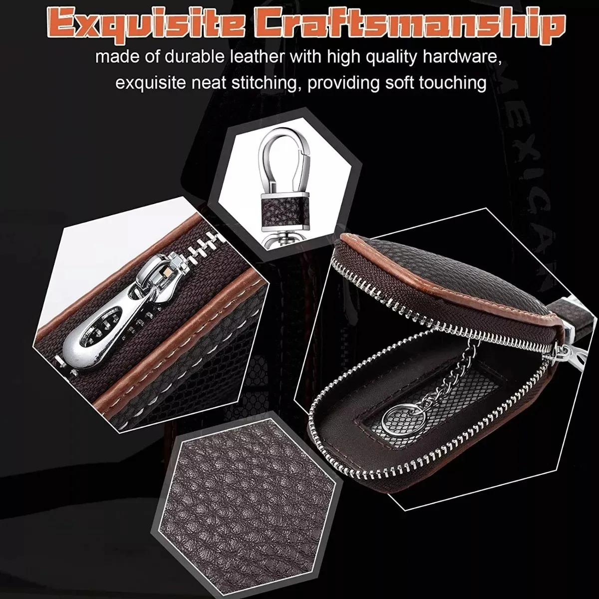 • Material de calidad: este soporte para llavero de automóvil está hecho de cuero suave y duradero con herrajes de calidad, buena textura de la capa exterior, costuras exquisitas y limpias, agarre cómodo y protección completa