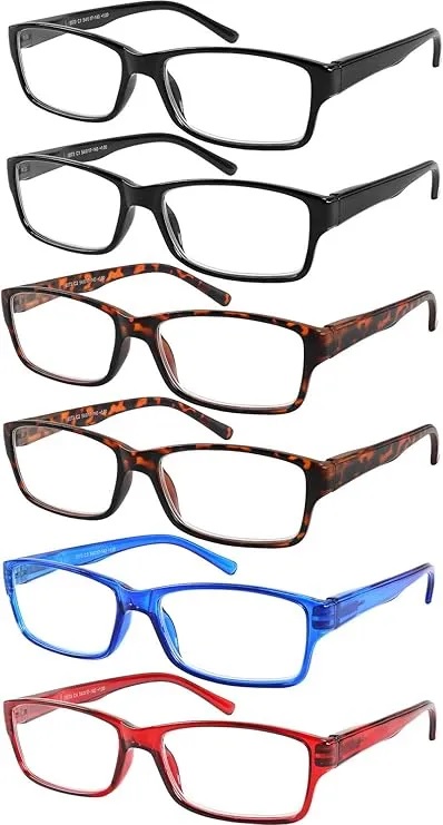 gafas de lectura: este paquete múltiple contiene cinco juegos de gafas de lectura ampliadas para ojos que luchan por leer palabras fuera de la página o pantalla de la computadora. Con este juego siempre puedes mantener un par a mano para cuando necesites revisar un recibo o revisar tu cadena de correo electrónico diaria.