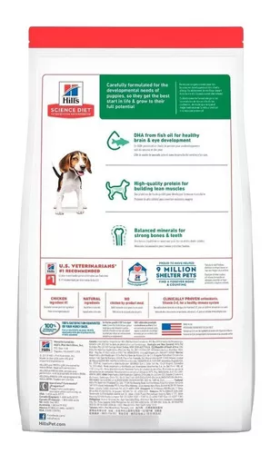 Hill’s Science Diet Puppy es la elección ideal para el crecimiento saludable de tu cachorro. Diseñada específicamente para razas mini, pequeñas y medianas, esta comida seca combina un delicioso sabor a pollo y cebolla que hará que tu mascota disfrute cada bocado. Con un contenido de 28.4% de proteína y 22.7% de grasa, proporciona la energía necesaria para un desarrollo óptimo.