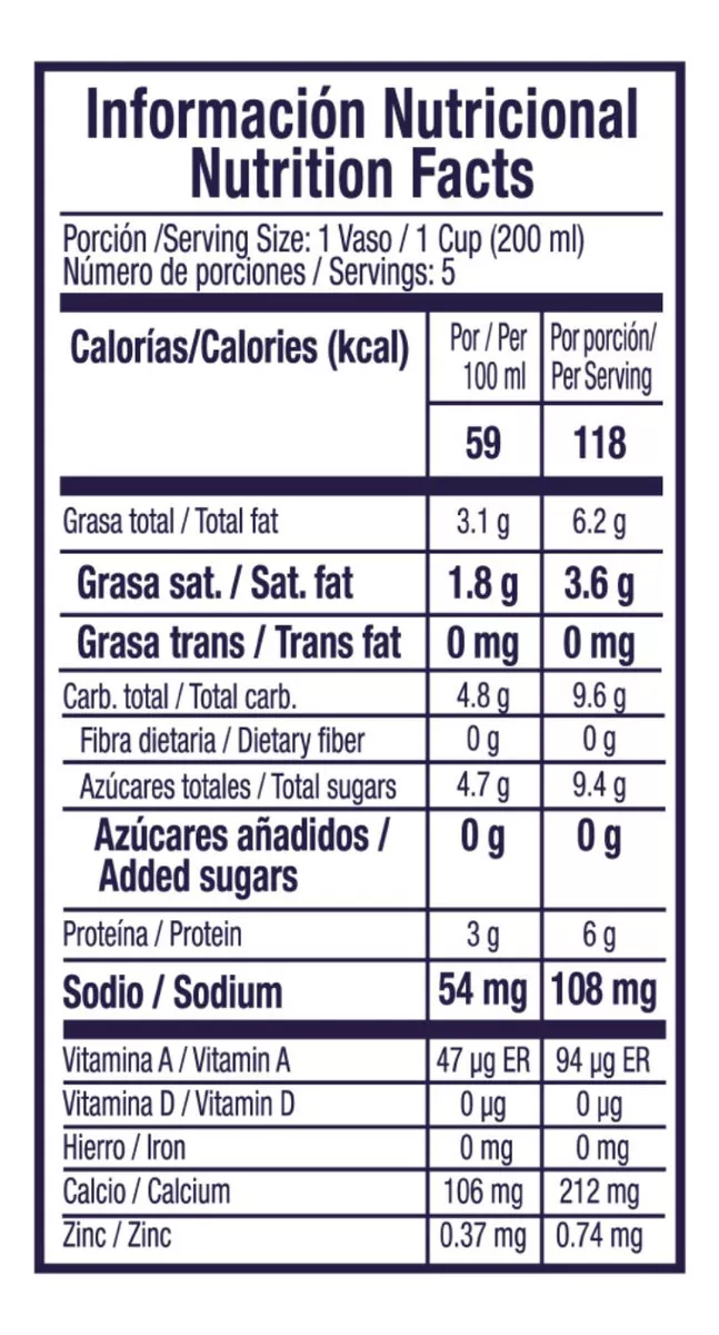 Leche Entera, Estabilizante (tripolifosfato de Sodio).