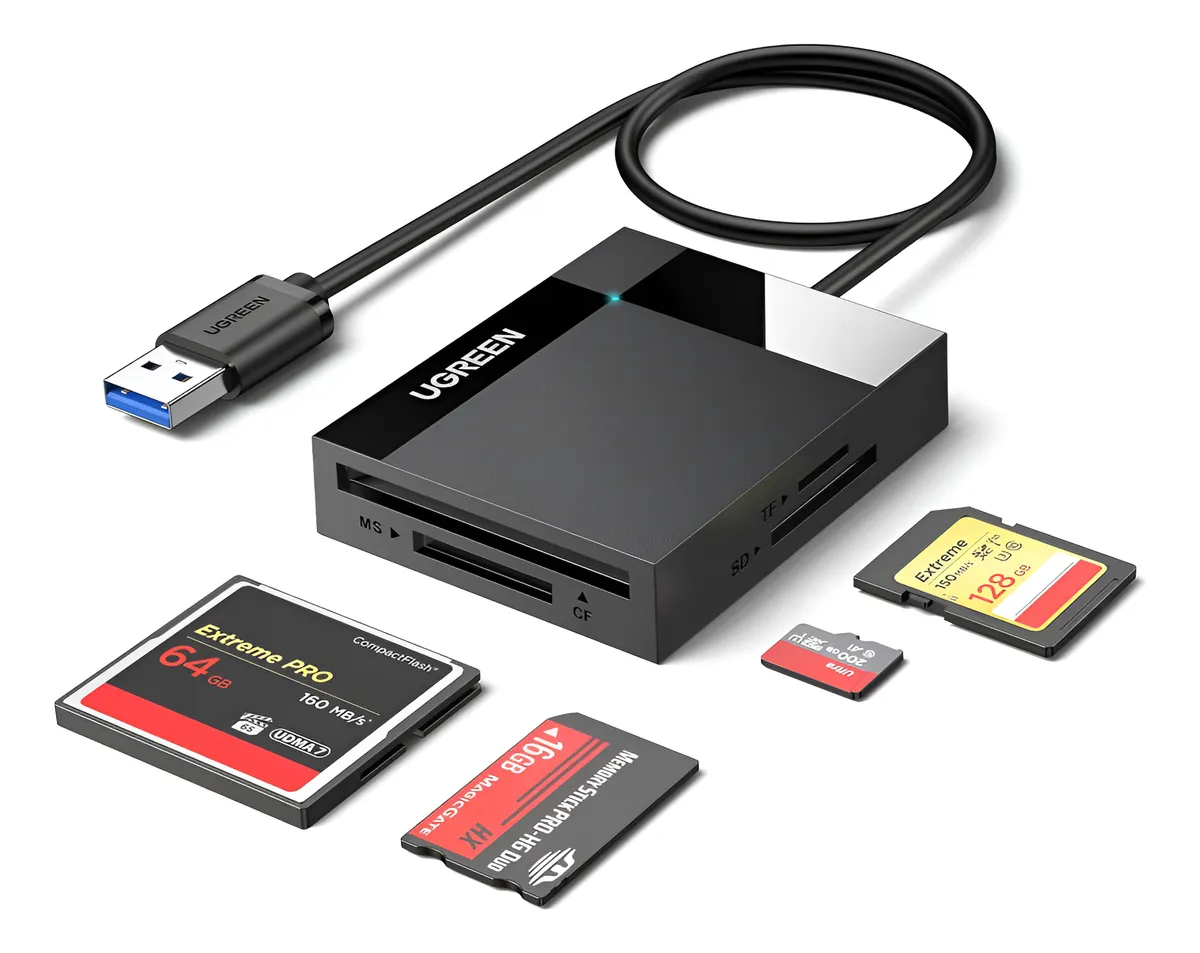 - Máximo rendimiento: con el último puerto USB Type-C o USB 3.0, puede disfrutar plenamente de las velocidades de transferencia en modo UHS-I de hasta 160 MB/s, compatible con USB 2.0/1.1. Explore y vea fotos al instante en sus teléfonos inteligentes / portátiles USB-C / USB3.0. (NOTA: La velocidad final de transferencia de datos depende de la tarjeta y del tipo de puerto USB).