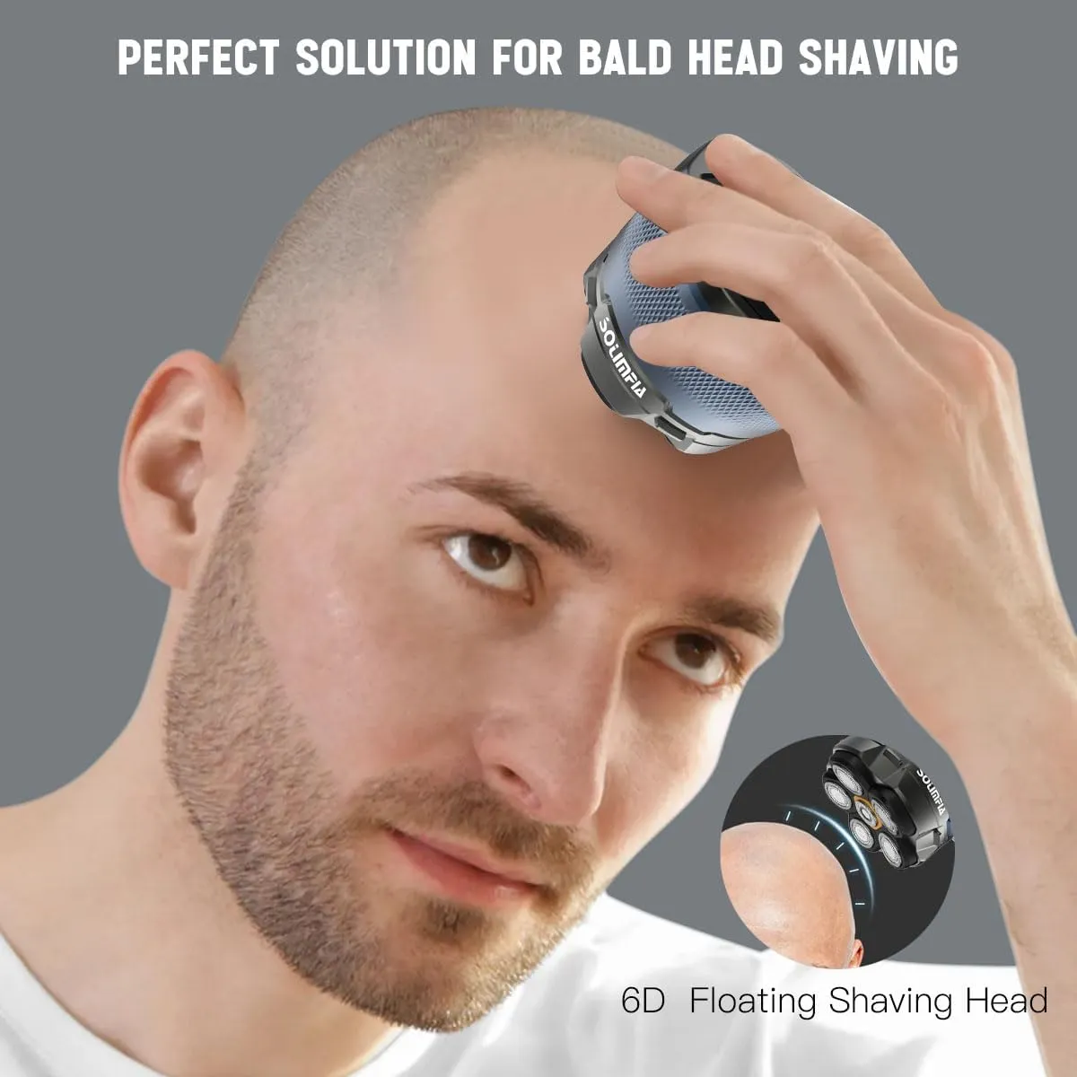 Maquinilla de afeitar eléctrica flotante 6D mejorada: la afeitadora eléctrica SOLIMPIA cuenta con un cabezal flotante de precisión 6D y un motor premium. La afeitadora se adapta a diferentes cabezas, caras y cuellos en todas las direcciones para garantizar una experiencia de afeitado suave, eficiente y relajante.