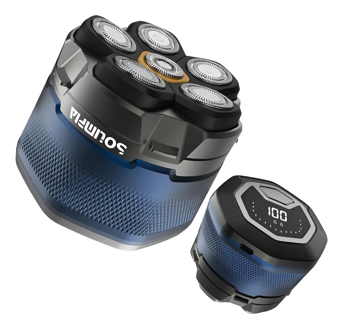 Pantalla LED y bloqueo de viaje: La pantalla LED indica el nivel de batería de la afeitadora y el tiempo de uso restante. El botón de encendido/apagado largo de la afeitadora activa un bloqueo de seguridad, evitando toques accidentales y consumo de energía adicional.