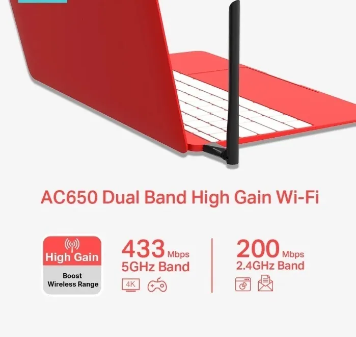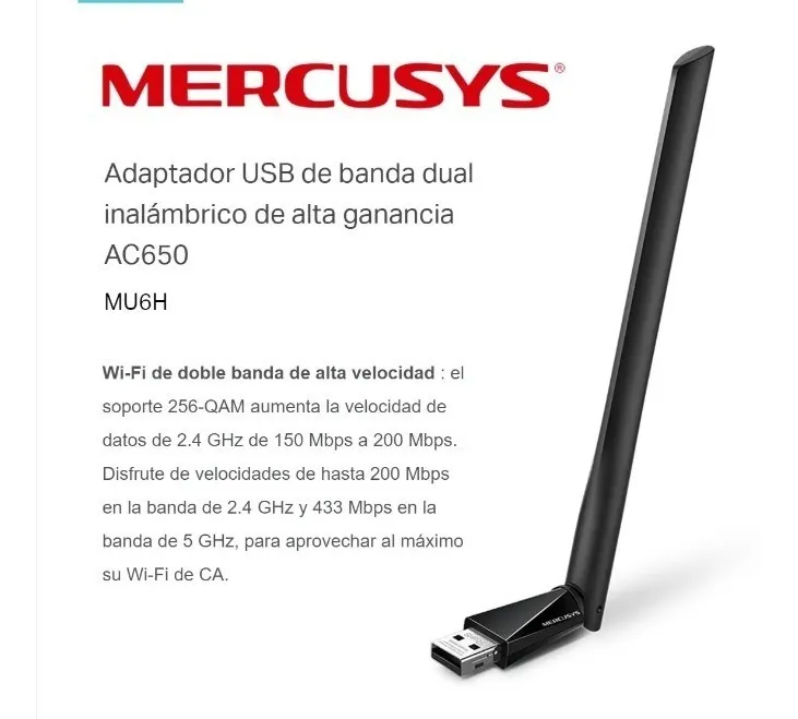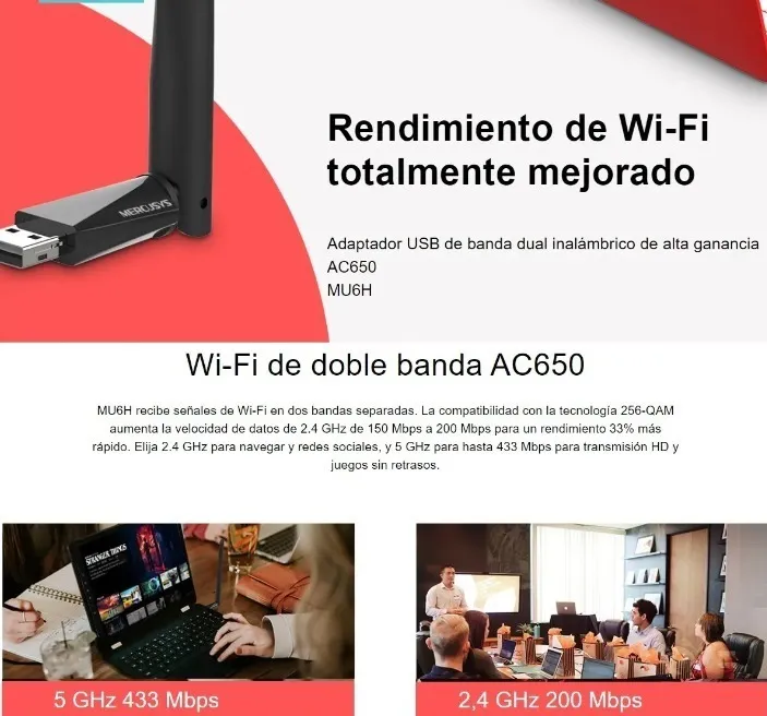 - 1. Adaptador USB inalámbrico de banda dual de alta ganancia AC650 (MU6H)