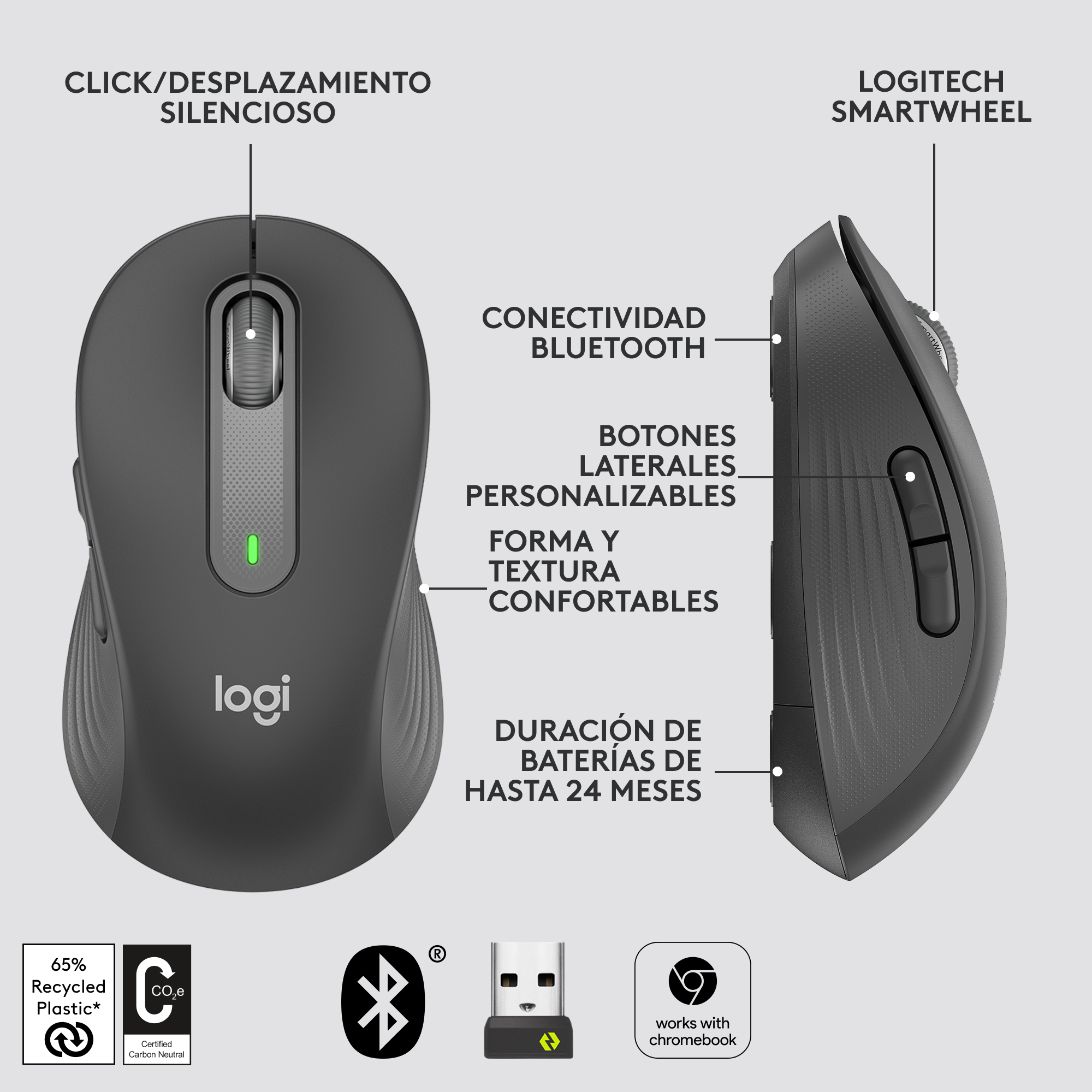 Consigue un desplazamiento más inteligente, más confortable y más productivo. Signature M650 cuenta con el botón rueda SmartWheel que ofrece precisión o velocidad de desplazamiento cuando lo necesitas.