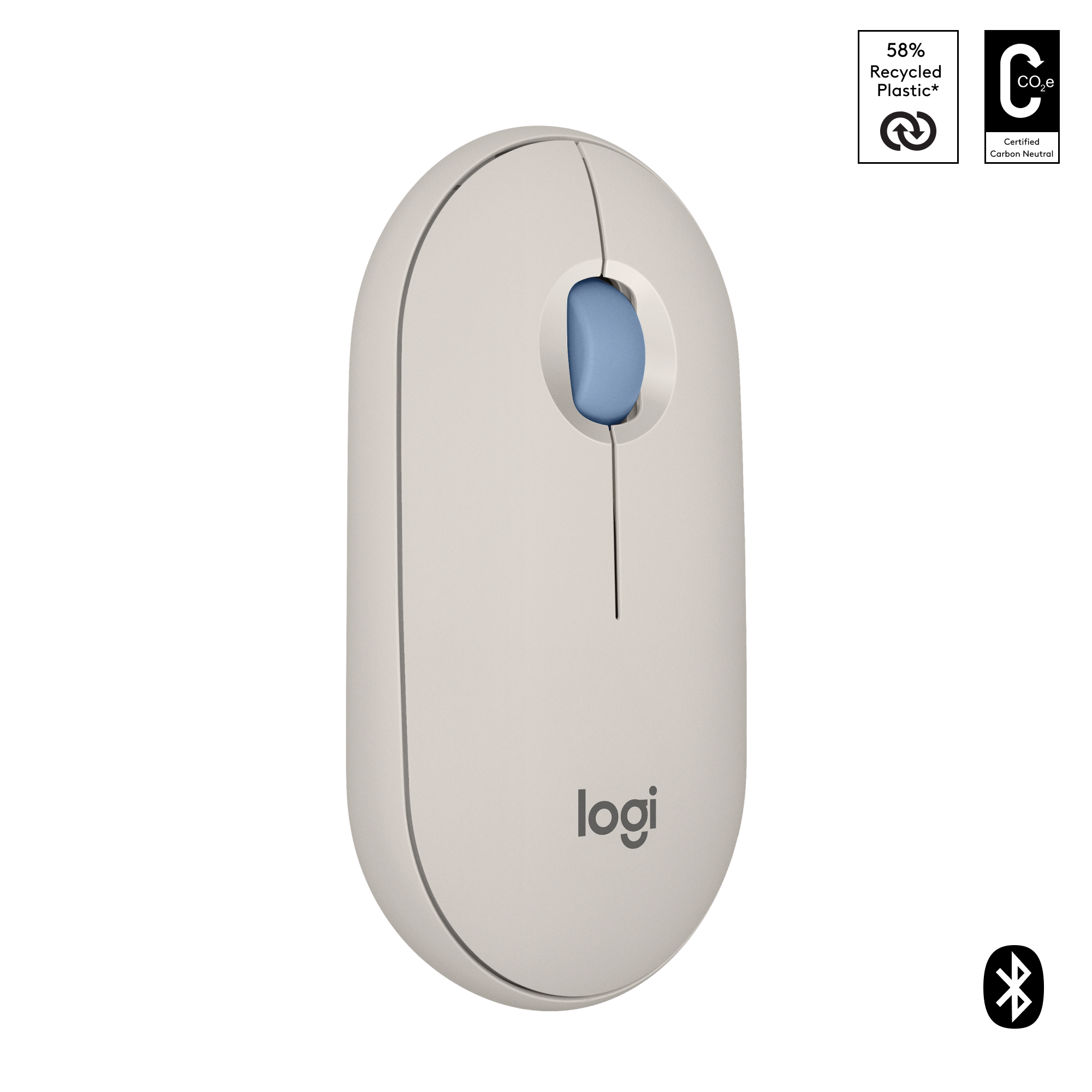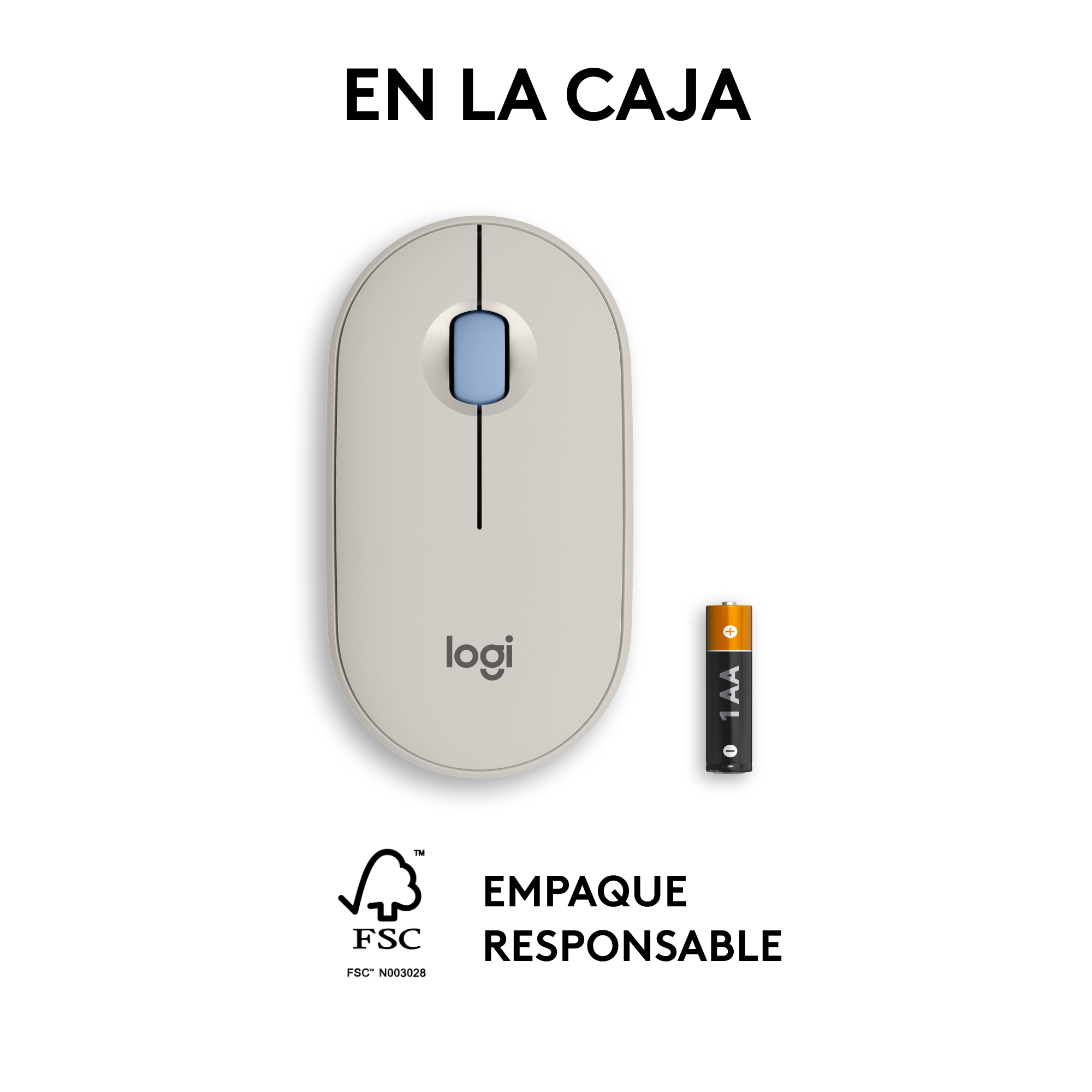 Logitech Pebble M350 está disponible en cuatro tonos: blanco crudo, azul o rosado. Elige el que mejor vaya con tus demás accesorios.