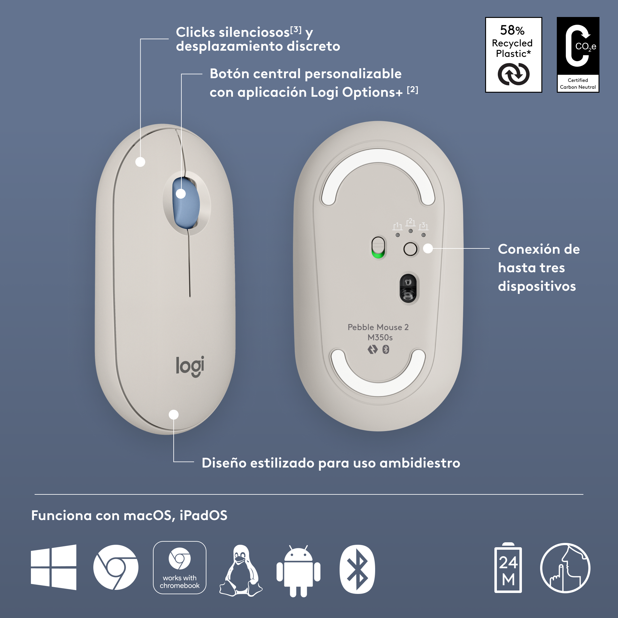Logitech PEBBLE M350, Mouse Inalámbrico Moderno y Silencioso