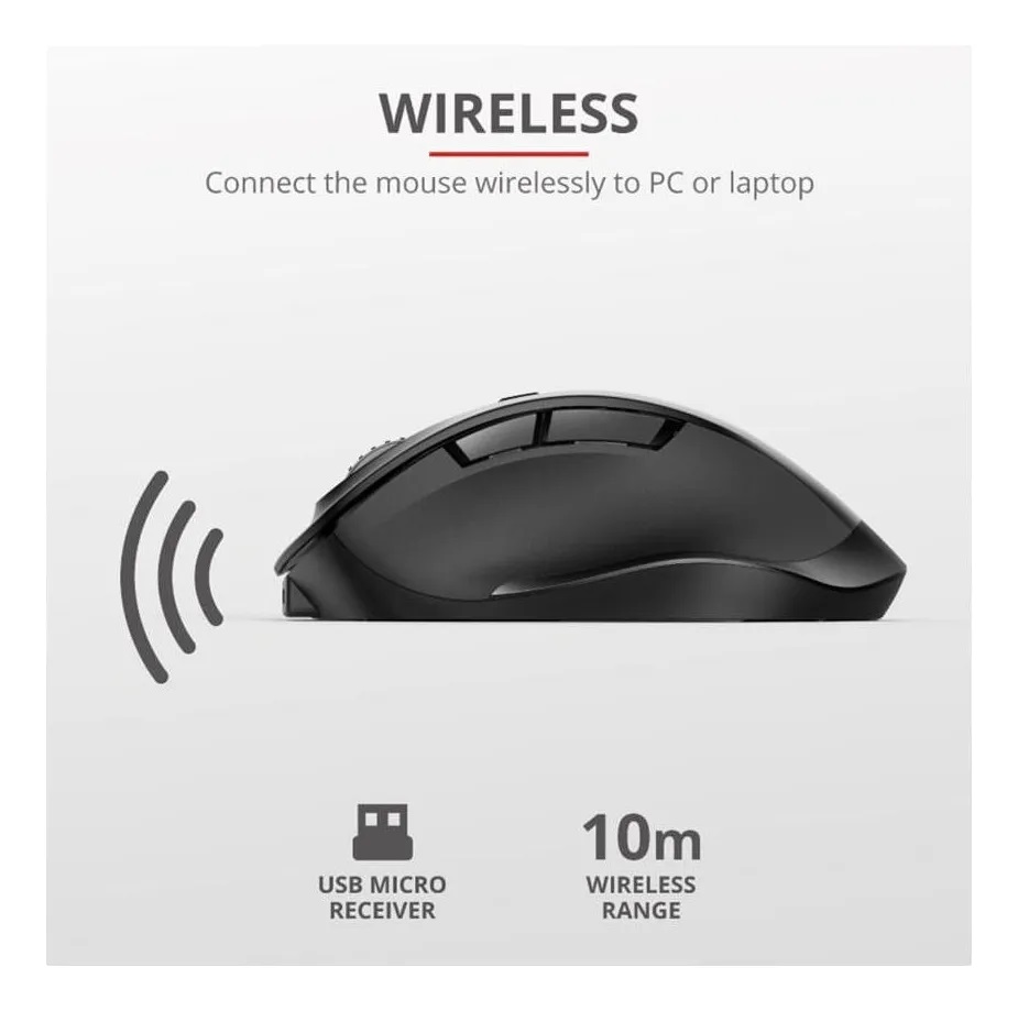 TrustMouse Inalambrico Usb Trust Fyda Ergonomico Batería Recarga Negro