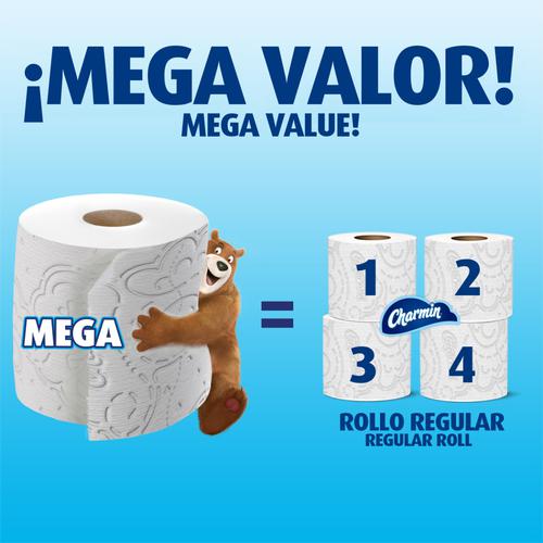Ultra suave. Mega rollo. El papel higiénico Charmin de 2 capas más suave jamás fabricado. No provoca atascos y es seguro para las fosas sépticas.