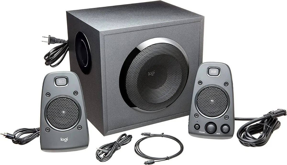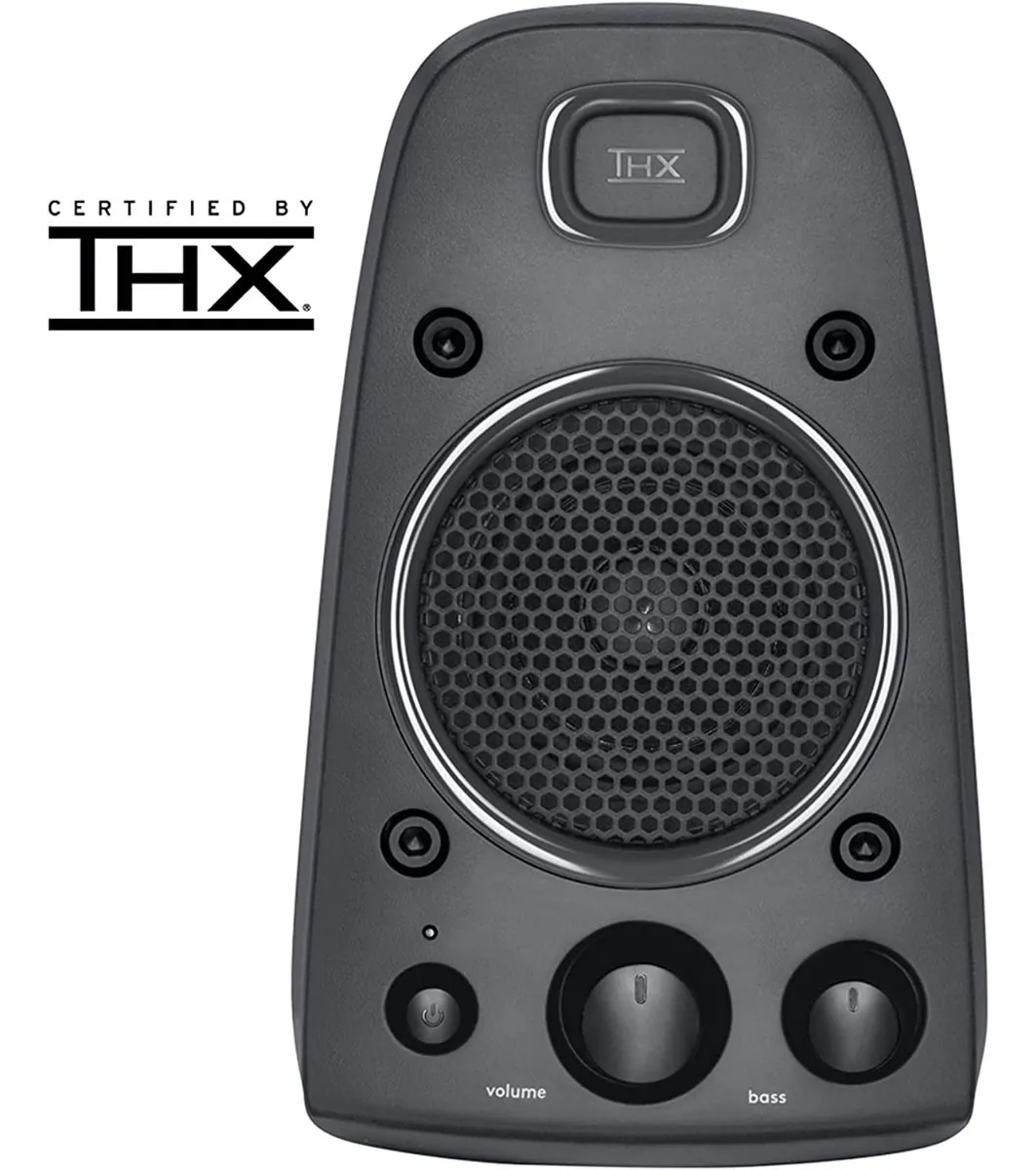 Controles: Encendido, volumen y control de graves en la bocina derecha