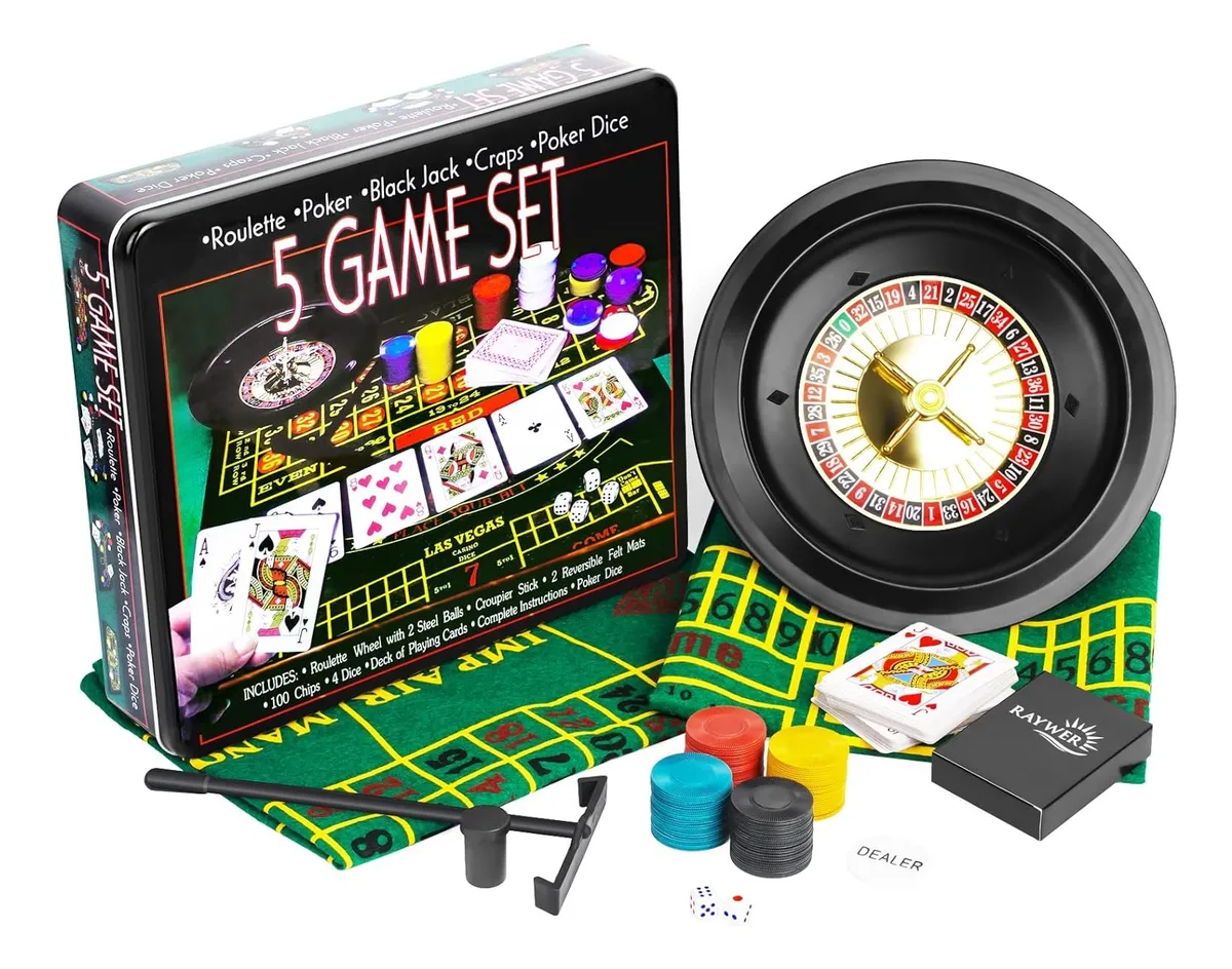 - Gran regalo: ¿Está buscando algo para divertirse jugando juegos de casino? obtenga ellos algo que es práctico, útil, conveniente, y una excelente nitidez. 5 en 1 Set de Juegos de casino.