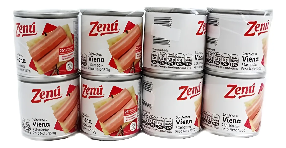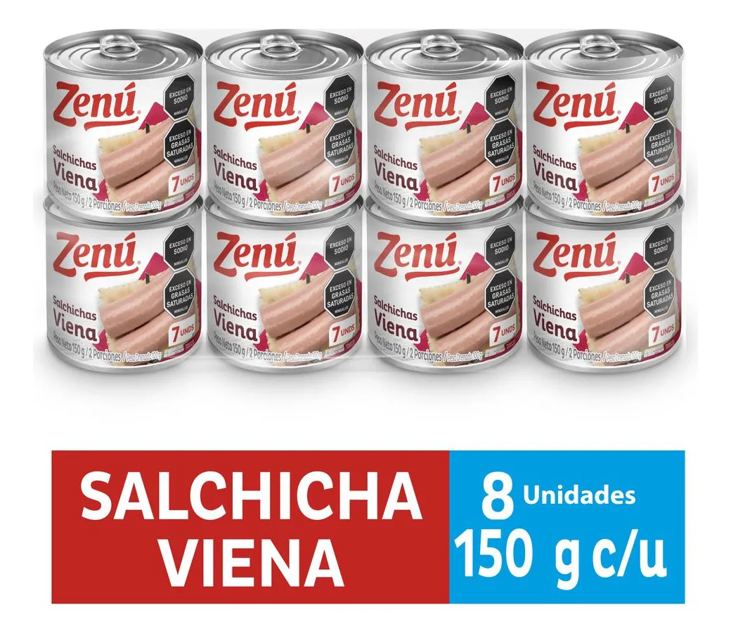 Descripción Este producto destaca por su sabor, ofreciendo el equilibrio perfecto entre condimentos y proteínas. Estas salchichas de tipo Viena están elaboradas principalmente con carne de cerdo y pollo, y aderezadas con especias naturales. Cada porción de 100 gramos proporciona un contenido nutricional que incluye proteínas, grasas y una cantidad moderada de sodio, lo cual las convierte en una opción versátil para la cocina. Ingredientes Carne (Carne de Cerdo, Carne de Pollo Separada Mecánicamente), Agua, Almidón de Yuca, Proteína de Soya, Sal, Material de Cerdo (Extracto Proteico de Cerdo), Cloruro de Potasio, Tocino, Polifosfato de Sodio (Regulador de Acidez), Aroma Artificial (Carne, Pimienta, Humo), Aroma Natural (Carne), Monoglutamato de Sodio (Acentuador de Sabor), Caroboximetilcelulosa (Espesante), Eritorbato de Sodio (Antioxidante), Color (Caramelo), Aroma Natural (Humo), Nitrito de Sodio (Fijador de Color), Color Artificial (Eritrosina). Información del producto Estas salchichas Viena son ideales para disfrutarlas solas, acompañadas de salsas, en sándwiches, o como ingrediente en recetas más elaboradas como ensaladas y platos de pasta. . Peso Drenado 100 g – Peso Neto: 150 g | Salchichas mixtas de cerdo y pollo con este tipo de empaque asegura que las salchichas conserven su sabor y textura originales. Especificaciones Almacenamiento Lugar fresco y seco Libre de grasas trans Si País de origen Colombia Importado o Nacional Nacional Tipo de alimentos enlatados o envasados Salchichas AlérgenosGluten, Huevos, Soya. Tamaño de la unidad (cada uno) 100.0000 g Peso neto 800.0000 g Cantidad de paquetes (recuentos) 8 Marca Zenu Garantía del vendedor: 30 días