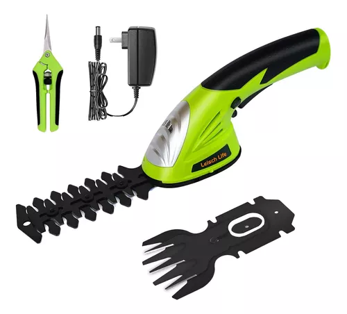 Leisch Life Cortadora de césped inalámbrica y cortadora de arbustos – 7.2 V 2 en 1 cortasetos de mano eléctrica con tijeras de podar batería recargable de iones de litio y cargador incluido