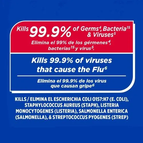 Toalllita húmeda que limpia y desinfecta matando varias bacterias y virus específicos | Mantenga fuera del alcance de los niños | No enjuague | País de origen: EE. UU.