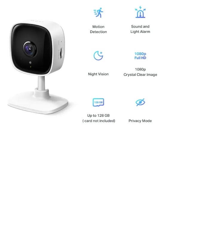 | Contenido del paquete | Cámara Tapo C100 Adaptador de corriente CC Guía de inicio rápido Tornillos de montaje Plantilla de montaje |