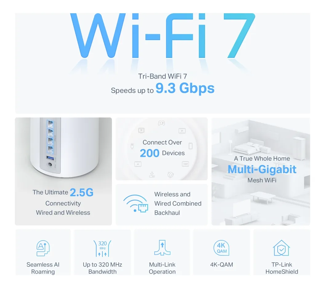 El TP-Link Deco BE65 es un sistema Wi-Fi 7 Mesh diseñado para ofrecer una cobertura excepcional en todo el hogar. Con su elegante color blanco, se integra perfectamente en cualquier ambiente, proporcionando no solo funcionalidad, sino también un toque moderno a tu espacio. Este sistema permite conectar múltiples dispositivos de manera simultánea, garantizando una experiencia de navegación fluida y sin interrupciones.