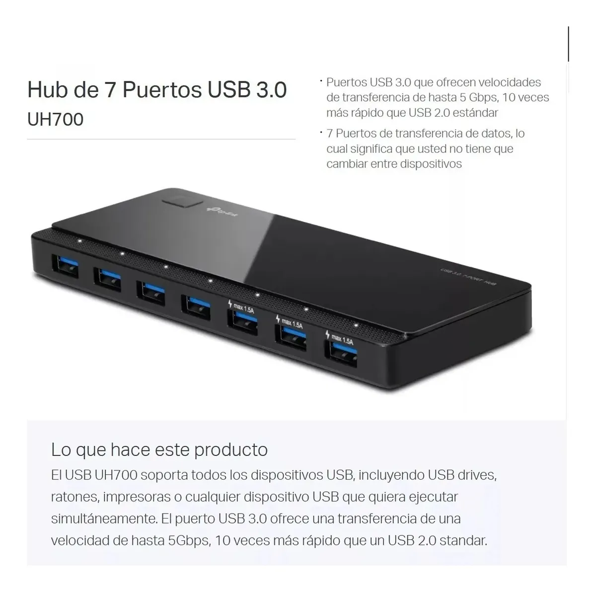 Tp-link, Hub De 7 Puertos Usb 3.0 (3 Carga 5v/1.5a), Uh700
