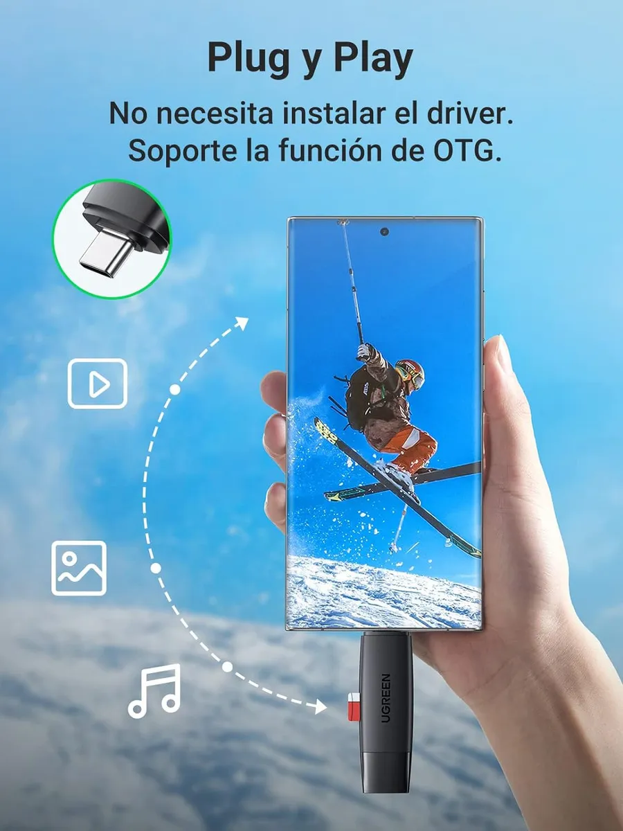 Ugreen Adaptador Doble Puerto Usb-c/usb 3.0 Lector Tarjetas