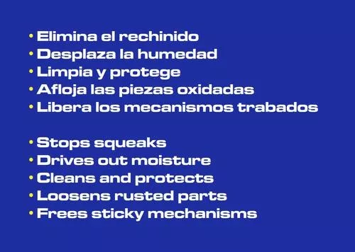 También puede penetrar para aflojar piezas atascadas, lubricar para que el equipo funcione bien, y limpiar, eliminando aceite, suciedad, grasa y mugre.