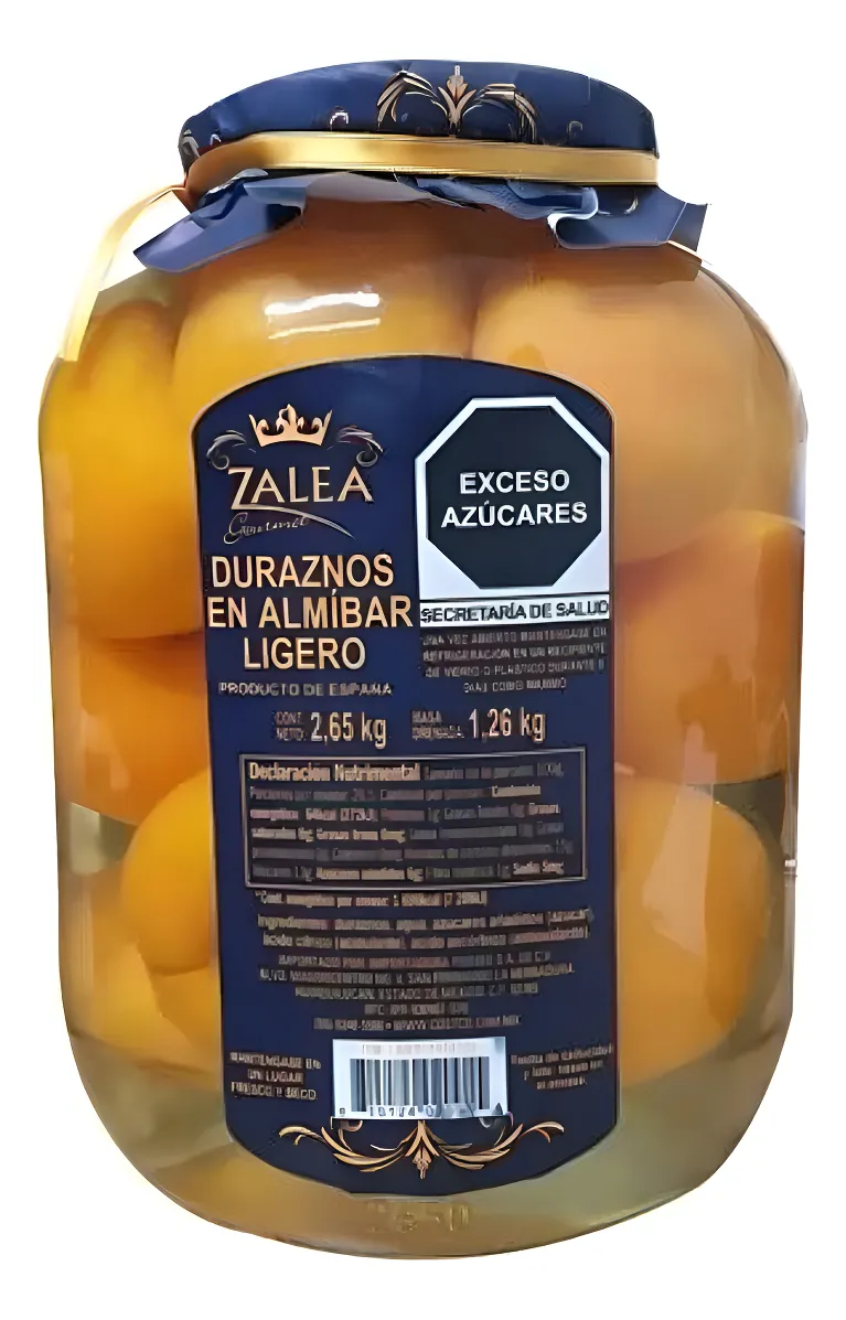 Zalea Gourmet Melocotones Enteros en Almíbar Ligero 2.7 kg / 5.9 lb Descripción Los melocotones en almíbar ligero de Zalea Gourmet son deliciosos. Disfrútalos como un dulce postre natural por si solos, o agrégalos a tus recetas favoritas. Ideales para compartir con tu familia, pareja y amigos en cualquier momento. Ingredientes Melocotón, agua, azúcar, acidulante: ácido cítrico y antioxidante: ácido ascórbico. Información del producto Peso neto: 2.7 kg / 5.9 lb | Listo para consumir | Almacenar en lugar fresco y seco | Producto de España. Etiquetas Vegano Vegetariano Libre de lactosa Especificaciones Almacenamiento Refrigerar después de abierto Peso de la unidad (cada uno) 2.7000 kg Peso neto 2.7000 kg Cantidad de paquetes (recuentos) 1 País de origen España Importado o Nacional Importado Tipo de alimentos enlatados o envasados Conservas de fruta AlérgenosNo contiene ninguno de los alérgenos principales Marca Zalea Gourmet Garantía del vendedor: 30 días
