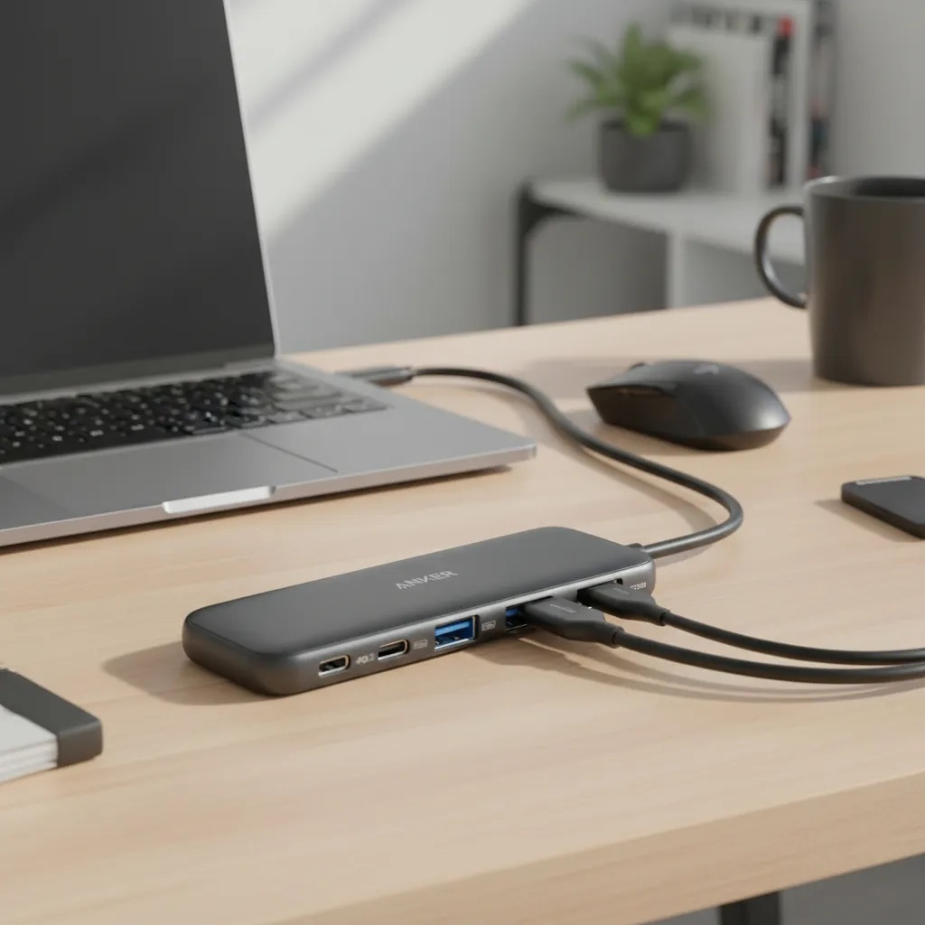 El Anker 332 USB-C Hub es la solución ideal para quienes buscan expandir la conectividad de sus dispositivos. Con un diseño elegante en gris oscuro, este hub ofrece cinco puertos funcionales que incluyen un puerto HDMI 4K y dos puertos USB-A de 5 Gbps, permitiendo la conexión de múltiples dispositivos simultáneamente. Compatible con sistemas operativos Windows, este hub es perfecto para profesionales y estudiantes que requieren una conexión rápida y eficiente. Su capacidad para transmitir video en alta definición y transferir datos a alta velocidad lo convierte en una herramienta esencial para cualquier entorno de trabajo o estudio. Con un total de siete puertos, el Anker 332 permite conectar todo lo que necesites, desde monitores externos hasta unidades de almacenamiento. Su diseño compacto y portátil facilita su transporte, lo que lo hace ideal para quienes están en constante movimiento. Optimiza tu espacio de trabajo y mejora tu productividad con este hub versátil. La calidad y confiabilidad de Anker aseguran un rendimiento excepcional, convirtiéndolo en una elección inteligente para quienes valoran la eficiencia y la funcionalidad en sus dispositivos. Garantía de fábrica: 12 meses