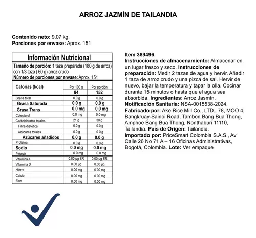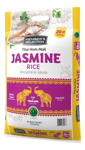Esta bolsa de 9.07 kg / 20 lb de arroz es perfecta para los hogares y los restaurantes por igual, pues es una fuente constante y deliciosa de arroz para cualquier ocasión | Nuestros productos Member’s Selection están elaborados con primera calidad a un valor excepcional | Producto de Tailandia.
