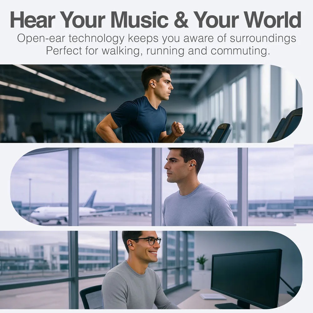 Mantente al tanto de tu entorno mientras disfrutas de un audio claro y de alta calidad con los auriculares inalámbricos Skeipods E40 Open-Ear Clip-On. Diseñados para descansar fuera del canal auditivo, brindan comodidad durante todo el día sin presión, lo que los hace perfectos para deportes, viajes, trabajo y uso prolongado. Cada auricular cuenta con un diseño de clip ultraligero de 5,2 g que se adapta cómodamente a cualquier forma de oreja. Con la cancelación de ruido ambiental (ENC) con IA, tu voz se mantiene clara durante las llamadas, mientras que la conexión multipunto te permite cambiar entre dos dispositivos BT sin volver a emparejarlos. Disfruta de hasta 6 horas de reproducción continua por carga, con 19 horas adicionales almacenadas en el estuche de carga compacto, para un total de hasta 25 horas de uso. Una carga rápida de 10 minutos proporciona hasta 2 horas de reproducción, manteniéndote conectado en movimiento. Especificaciones • AI ENC (Cancelación de ruido ambiental): Mejora la claridad de las llamadas al reducir el ruido de fondo. • Duración de la batería: 6 horas de reproducción por carga más 19 horas adicionales del estuche de carga, para un total de 25 horas. • Diseño de clip de oreja abierta: Mantiene las orejas libres para una conciencia situacional completa y comodidad sin presión. • Modo de juego de baja latencia (80 ms): Asegura que el audio y el video permanezcan sincronizados para juegos, streaming y videollamadas. • Sonido estéreo de alta definición con graves profundos: Los controladores de doble frecuencia ofrecen agudos nítidos y graves potentes. • Carga rápida: Una carga rápida de 10 minutos proporciona hasta 2 horas de reproducción. • Conexión multipunto: Conecta y cambia entre dos dispositivos BT al instante. • BT 6.0: Conexión inalámbrica estable con un alcance operativo de más de 10 metros. • Control táctil integrado: Gestiona fácilmente la música, las llamadas, el volumen y el asistente de voz. • Emparejamiento automático: Los auriculares se encienden y se conectan tan pronto como se sacan del estuche. • Ajuste seguro ultraligero: Solo 5,2 g por auricular, con clip flexible ergonómico para deportes y uso durante todo el día. • Llamadas manos libres: Micrófono integrado para una comunicación de voz nítida. • Puerto de carga: USB tipo C para una carga más rápida y eficiente. • Dimensiones de los auriculares: 27,5 × 27 × 16 mm • Dimensiones del estuche de carga: 63,8 × 47,7 × 26,9 mm Garantía del vendedor: 30 días