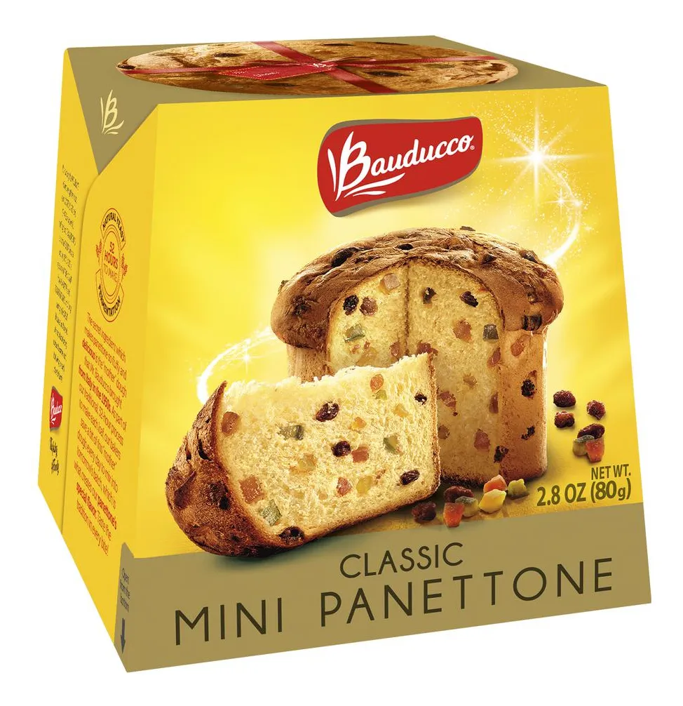 Disfruta de estas deliciosas mini tortas de tamaño personal, húmedas, frescas y hechas con sabrosa masa y chispas de chocolate. El panettone es un pastel navideño tradicional italiano preparado cuidadosamente en un proceso que dura 52 horas. Bauducco es el mayor fabricante de Panettone del mundo y la marca número uno en Estados Unidos.