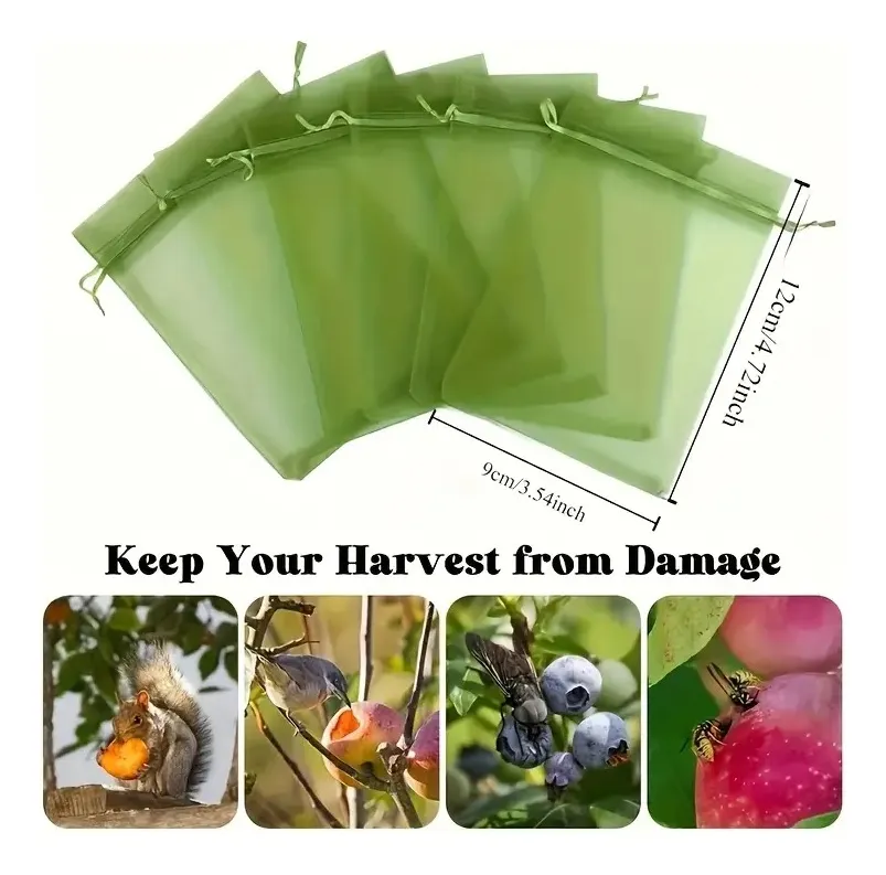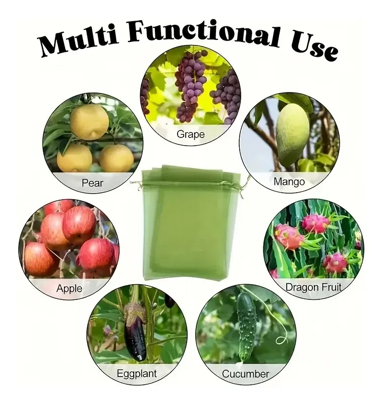 -USOS: Bolsa ideal para proteger frutas de porte pequeño como guayaba manzana, guayaba pera, chirimoya, anón, uvas, entre otros.