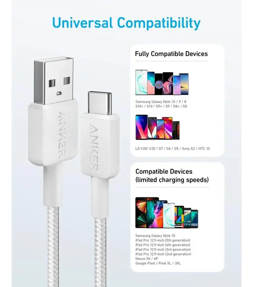 El Cable de Carga Rápida Anker 322 es la solución ideal para quienes buscan eficiencia y comodidad en su día a día. Con un conector de entrada USB A y un conector de salida USB C, este cable permite una carga rápida y segura de tus dispositivos, optimizando el tiempo de espera. Con una longitud de 1.8 metros, ofrece la flexibilidad necesaria para usar tus dispositivos mientras se cargan, sin restricciones. Su diseño en color blanco no solo es elegante, sino que también se adapta a cualquier entorno, ya sea en casa, la oficina o en movimiento. La marca Anker es reconocida por su calidad y durabilidad, lo que garantiza un rendimiento excepcional en cada uso. Este cable es perfecto para usuarios de smartphones, tabletas y otros dispositivos que requieren una conexión rápida y confiable. Garantía del vendedor: 30 días