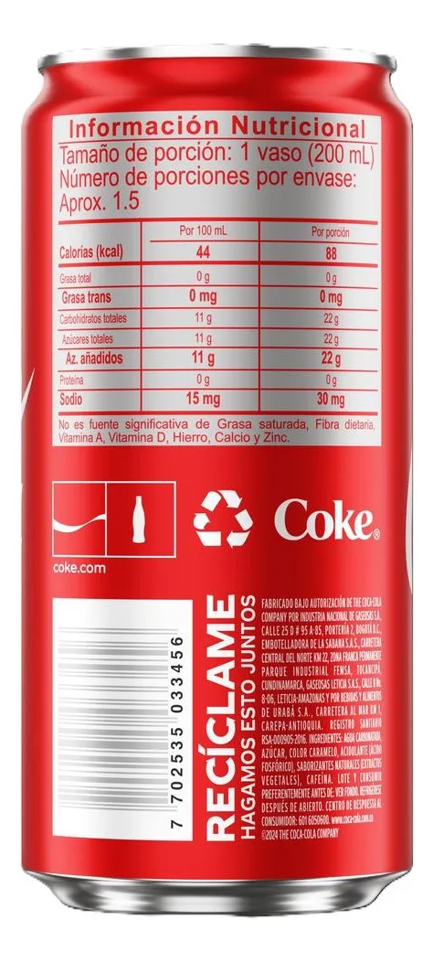 Agua Carbonatada, Azúcar, Color Caramelo, Acidulante (Ácido Fosfórico) , Saborizantes Naturales (Extractos Vegetales) y Cafeína.