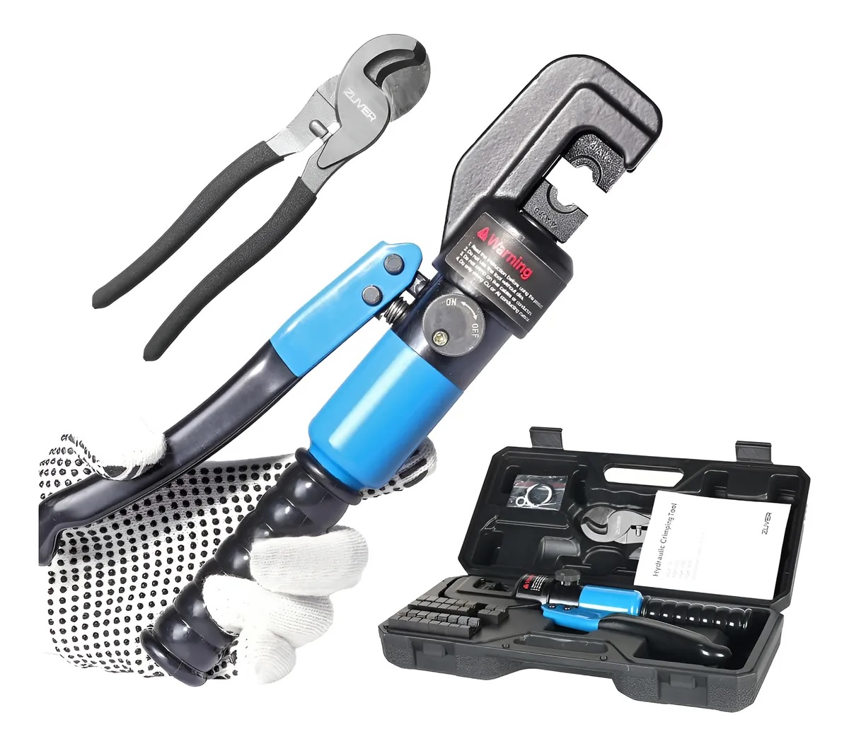 Herramienta de crimpado hidráulico y cortador de cables Engarzadora de cable hidráulico 8 US TON 12 AWG a 00 (2/0) Kit de herramientas de cable de terminal eléctrico con 10 troqueles (YQK-70)