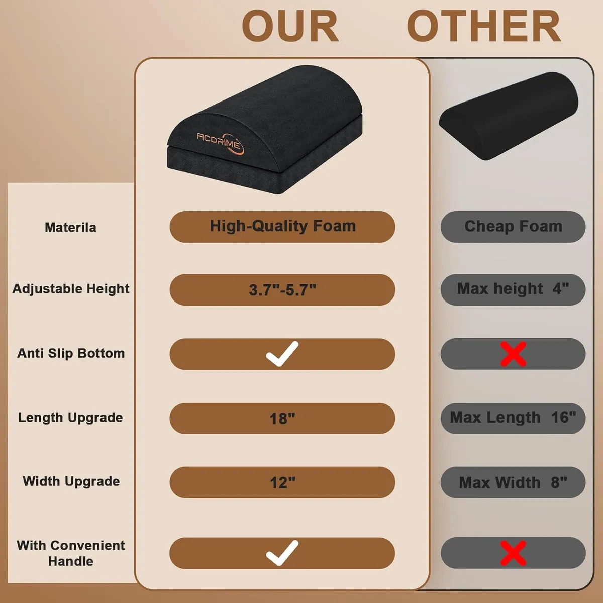 - Altura ajustable del reposapiés: el reposapiés extraíble de dos piezas se puede usar juntos para una altura total de 6 pulgadas o separarse para uso individual, y se puede utilizar para estirar los pies a cualquier altura deseada. Cada almohada individual tiene una bola antideslizante debajo.