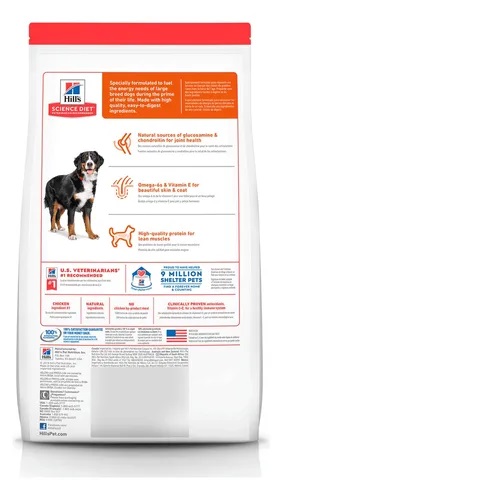 Alimento para perros adultos de razas grandes. Contiene glucosamina y condroitina. Enriquecido con Omega 3 y 6, vitamina C y E como antioxidantes naturales y sin colorantes ni conservantes artificiales.